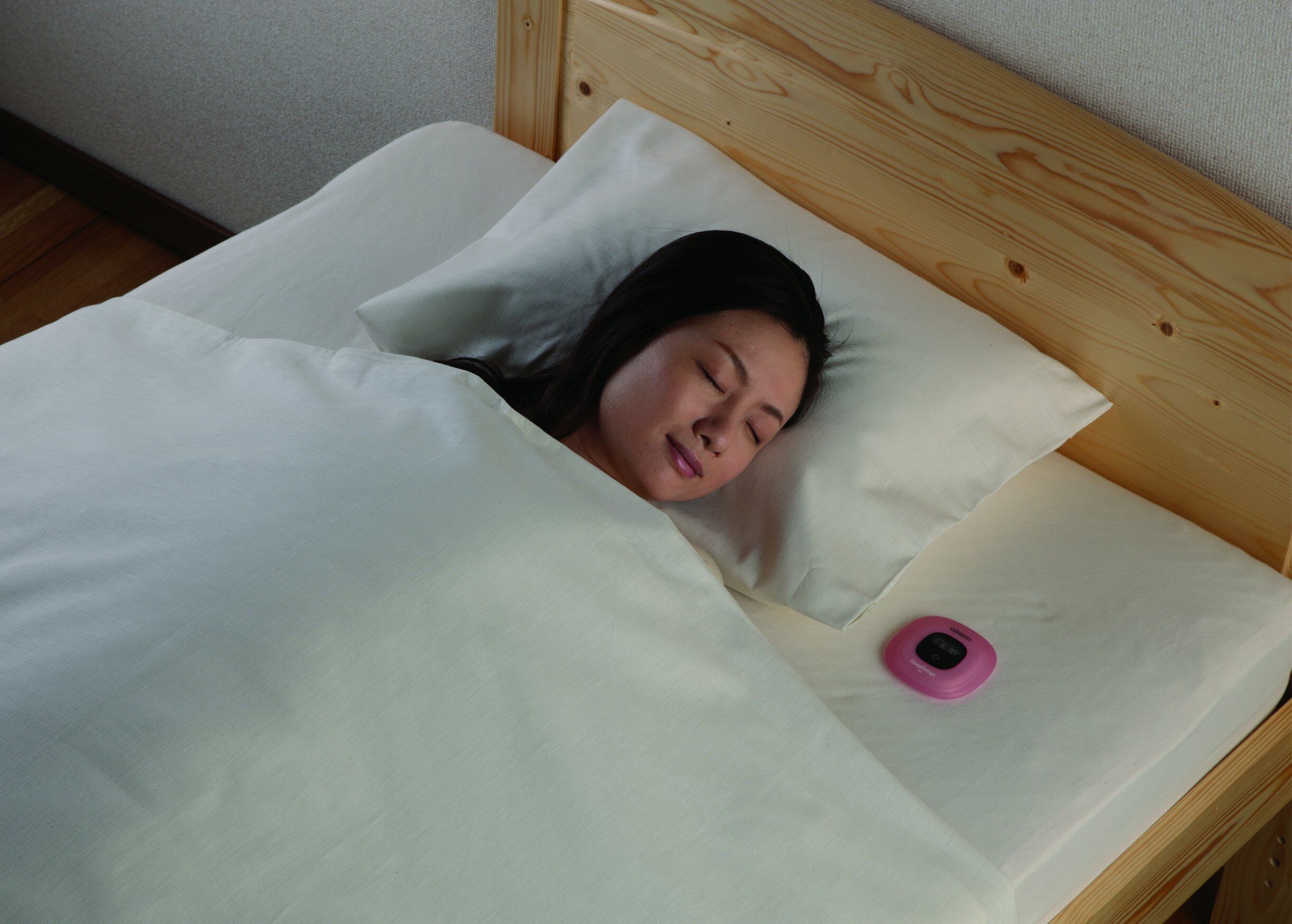 「OMRON ねむり時間計 Sleep Design lite HSL-001」は、寝返りなどによる寝具の動きを検出し、あなたの眠りを測定。睡眠を見守ってくれる