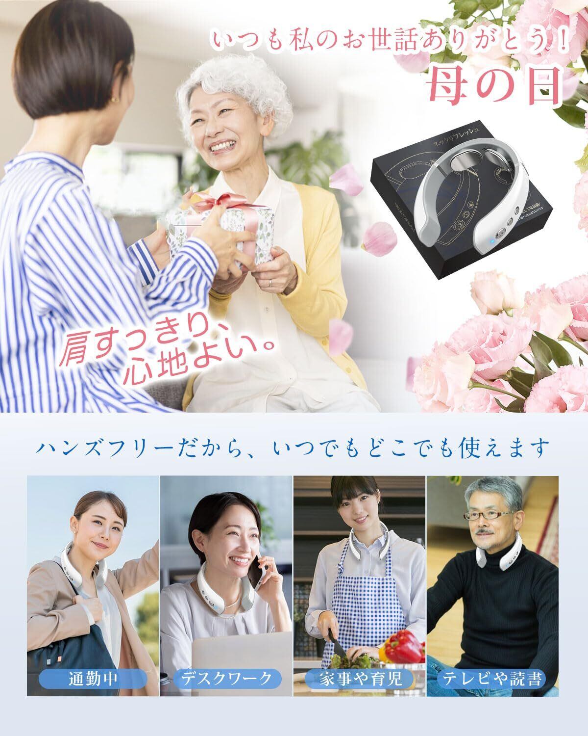 ネックケア 首 リラクゼーション器 2025新登場(EMS&TENSのW効果x加温 振動)メモリー機能 ネックリラックス 19段階強度調節 10種類モード 静音可能 軽量 日本語音声ガイダンス ホットケア リラックスグッズ 母の日 父の日 プレゼント お祝い ギフト 敬老の日 男女兼用 日本語説明書を同梱 (ホワイトグレー)