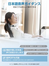 【液晶ディスプレイと日本語音声ガイダンス】本体に備えられた液晶ディスプレイは、各種モードや強弱の選択がはっきりと表示されており、またボタンで操作できるため、簡単にお使いいただけます。日本語音声ガイダンス機能により、手元を見ずに操作できるので、機器が苦手な方でも気軽にお使いいただけます。音声ガイドはOFFにできるので、公共の場など音声ガイドが使いにくい場所でも全く気にする必要はありません。