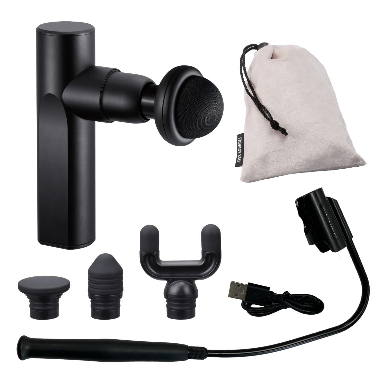ATEX アテックス 筋膜 リリースガン AX-HXL236Abkブラック 専用アーム&収納ポーチ&日本語取説付き アタッチメント4種 肩 背中 腰 足 全身 振動 小型 軽量 250g 強力 6mm振幅 振動レベル4段階 プレゼント ギフト 健康グッズ 持ち運びに便利