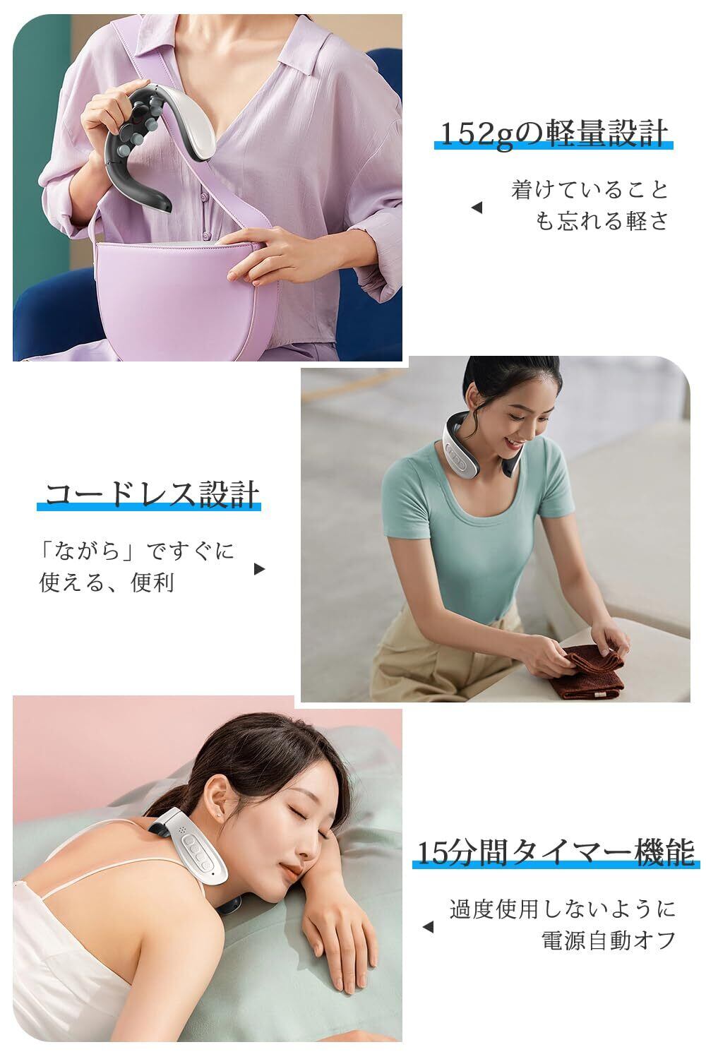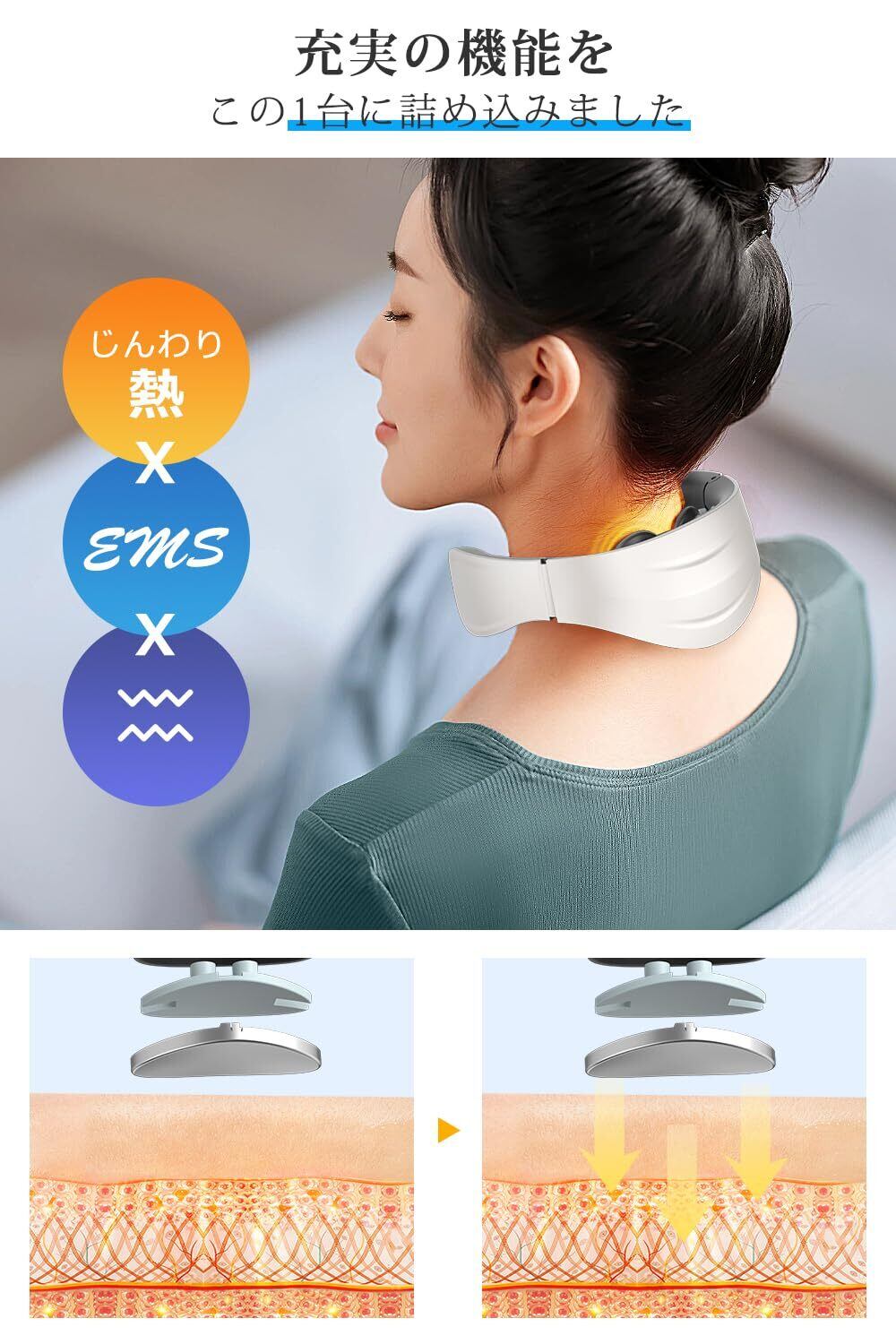 ネックケア 首 リラクゼーション器 【加温とEMSのW効果 振動】 首元ケア 6種モード調節 加熱機能 15種類強さ調節 首元リフレッシュ 超軽量 フィット感 USB充電式 ボタンで簡単操作 提示音機能 15minタイマー付き 持ち運び便利 男女兼用 会社 出張 旅行 寮 コードレス 敬老の日 お祝い ギフト