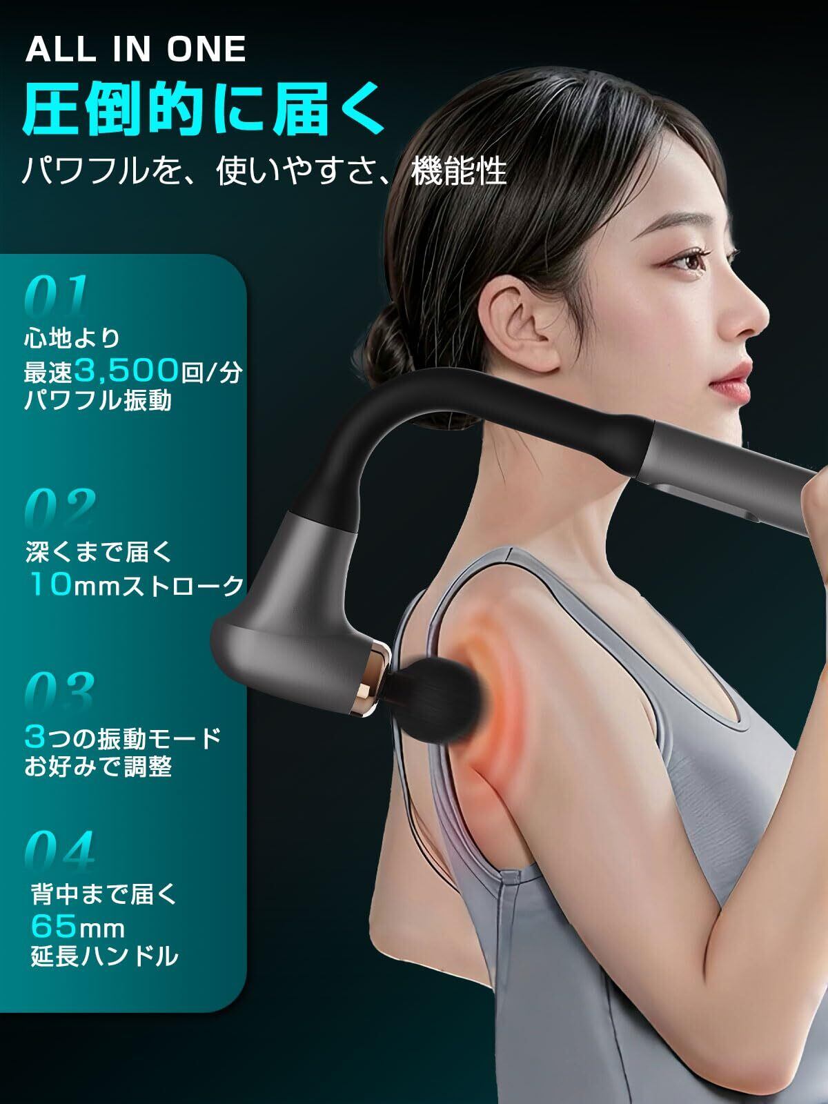 【限定セール】筋膜リリースガン ハンディタイプ 【液晶ディスプレイ搭載・弾力性アーム背中まで届く】きんまくリリース 3つの振動モード・6段階強力振動 10mm振幅 業界最速3800回転/分 静音 筋膜ガンリリースガン 筋膜リラックス 電動ガン Type-C急速充電 全身リフレッシュ 日本語説明書付き 誕生日プレゼント お祝い 女性 男性 父の日 母の日 クリスマス 最適