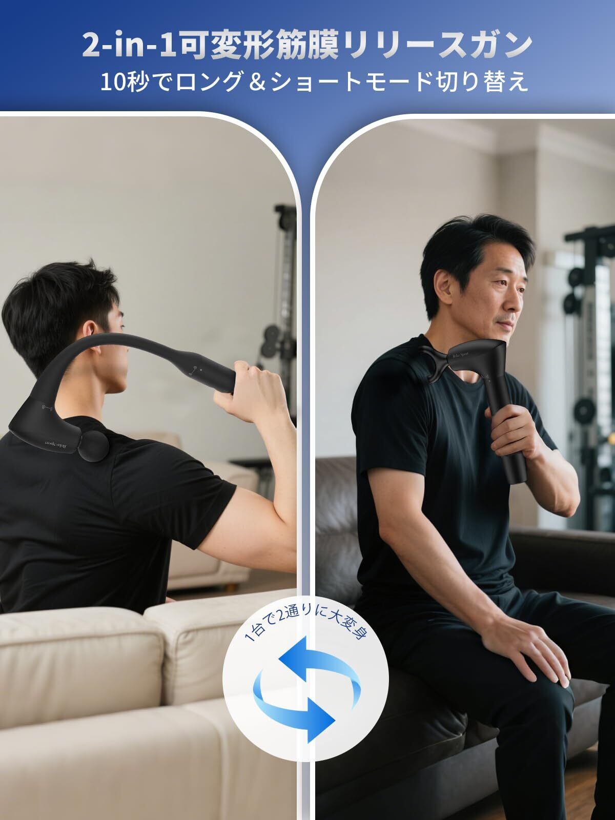 「2-in-1可変形」筋膜リリースガン 背中まで届く ハンディガン 業界初 取り外し可能延長ハンドル 10mm振幅 2500mAh*2大容量 Type-C急速充電 静音設計 コンパクト 日本語説明書付き ギフト最適 2年間メーカー