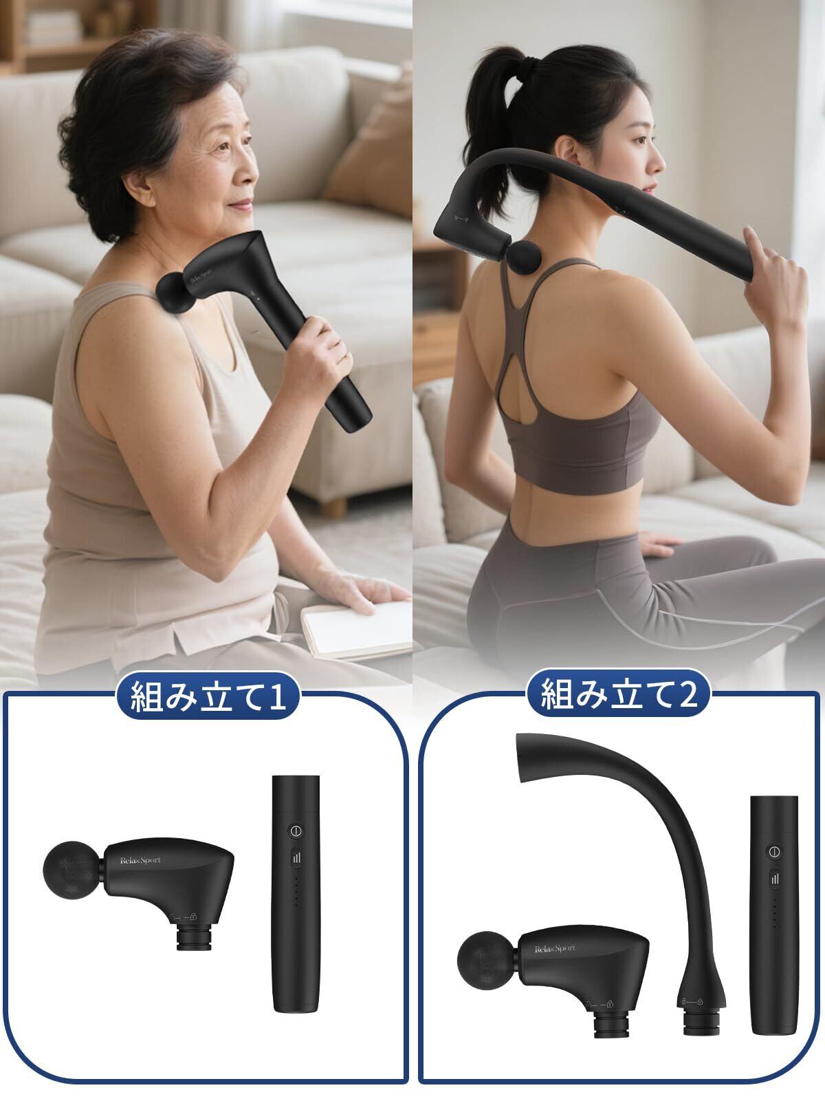 「2 in1&1台で長短自在のプロ設計」RelaxSport筋膜リリースガンは脱着式アタッチメント設計を採用!1台でロングハンドル&コンパクトの2形態を自由に切り替えられます。従来製品と異なり、追加購入不要で背中まで届く長柄モードと手軽なショートモードを兼備。人間工学に基づいで、一人でも全身届くのセルフケアを実現。