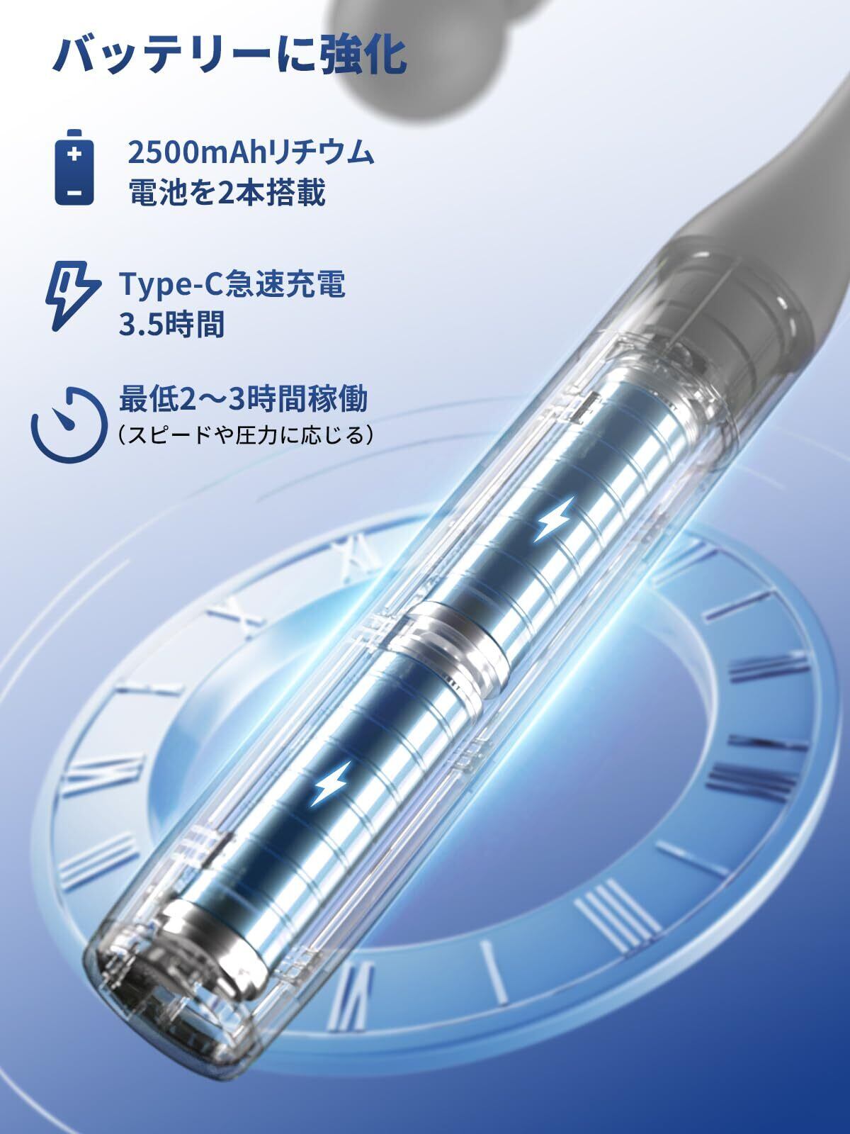 「大容量・交換可能バッテリー」業界平均+25%の2500mAhバッテリーを2本内蔵しており、長時間使用可能。Type-C急速充電による即復帰と、別売専用ハンドルでの電池交換で本体買替不要を実現。コスパ&環境配慮の長寿命設計です。※稼働時間はスピードや圧力によって大きく前後します。