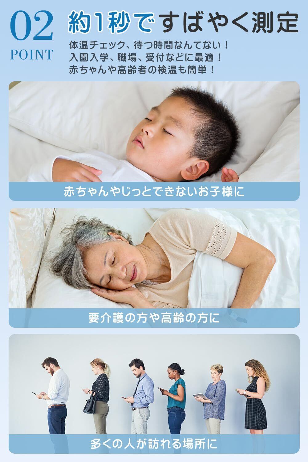 【非接触型】赤外線センサーを搭載し、非接触でわずか1秒で温度を測定できます。