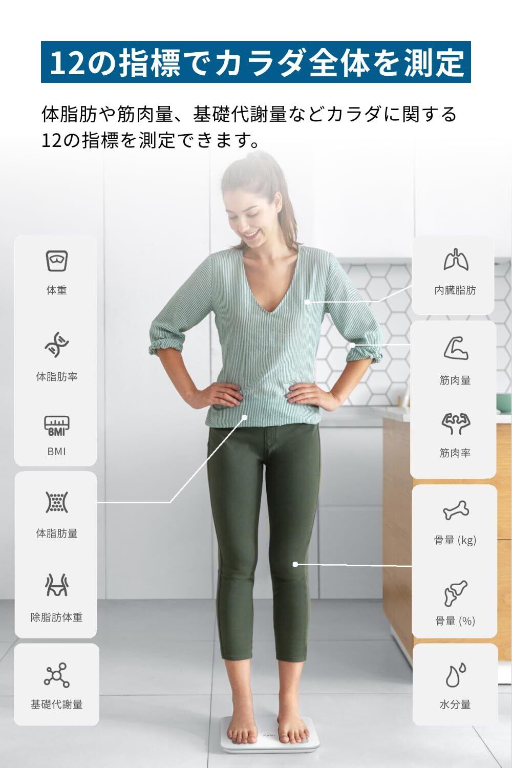 Anker Eufy (ユーフィ) Smart Scale A1(体重体組成計)【アプリ対応/Fitbit連携/体脂肪率/BMI/基礎代謝量/水分量/体脂肪量/骨量/内臓脂肪/コンパクトサイズ】ホワイト