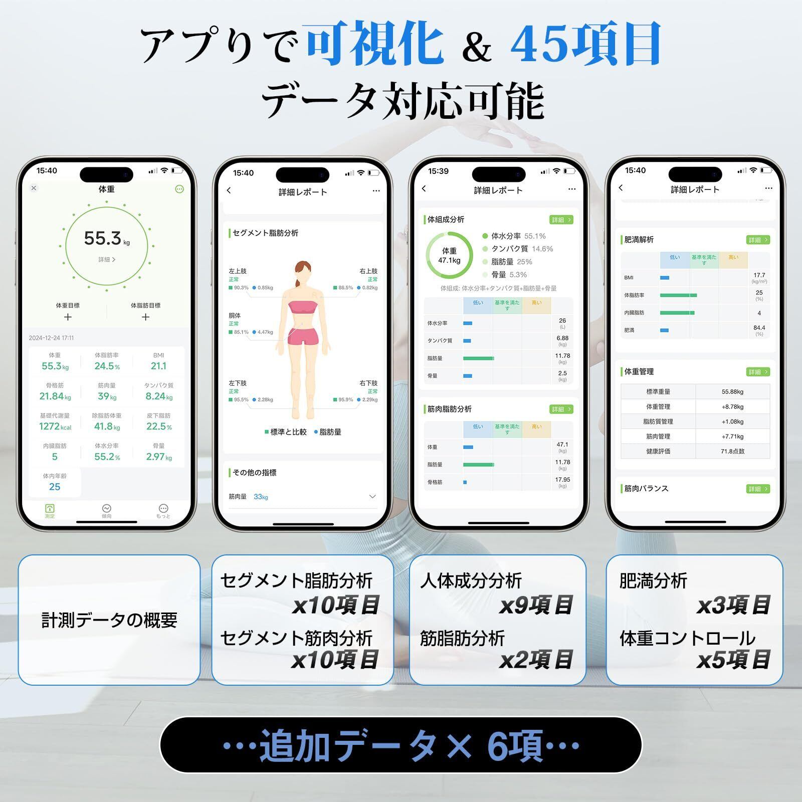 AQielev 体重計 スマホ連動 体組成計 体脂肪率【2025年春 専門開発 45項目・八電極 双周波による全身部位別測定】米国トップ会社と共同開発 高度専門化されたヘルスメーター 最先端高精度BIAセンサー 15 秒で迅速測定 体重・体脂肪率の測定精度は99.99% 自動ON/OFF iOS/Android対応 充電式 収納簡単 一家一台 PSE認証済み 日本語取扱説明書