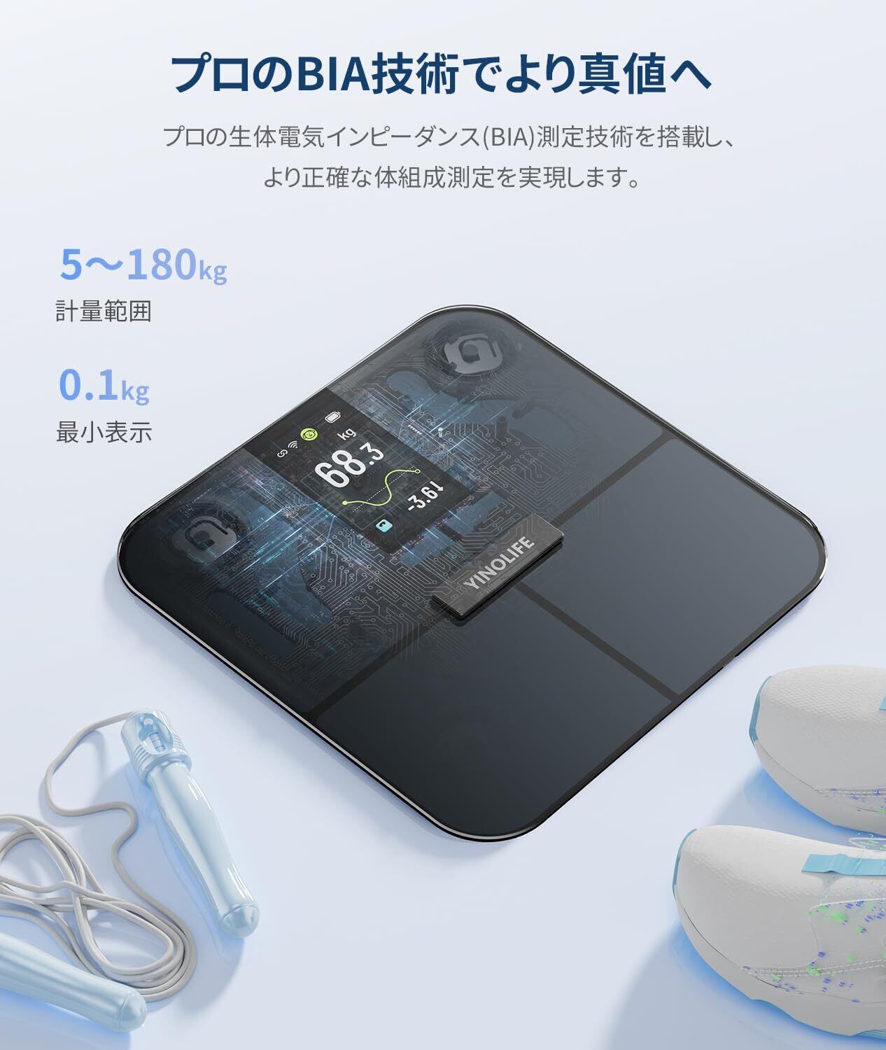 【特別価格】YINOLIFE 体重計 体組成計 FI2428LBF スマホ連動 体脂肪計 WiFi通信機能 ITO技術 4.3インチTFT大画面 結果直接に確認 Bluetooth5.0 データ自動転送 25項目測定 体重体組成計 高精度 180kgまで対応 weight scale 体脂肪率 BMI 筋肉量 基礎代謝 内臓脂肪 iOS/Android対応 無料アプリ健康管理 日本語取扱説明書