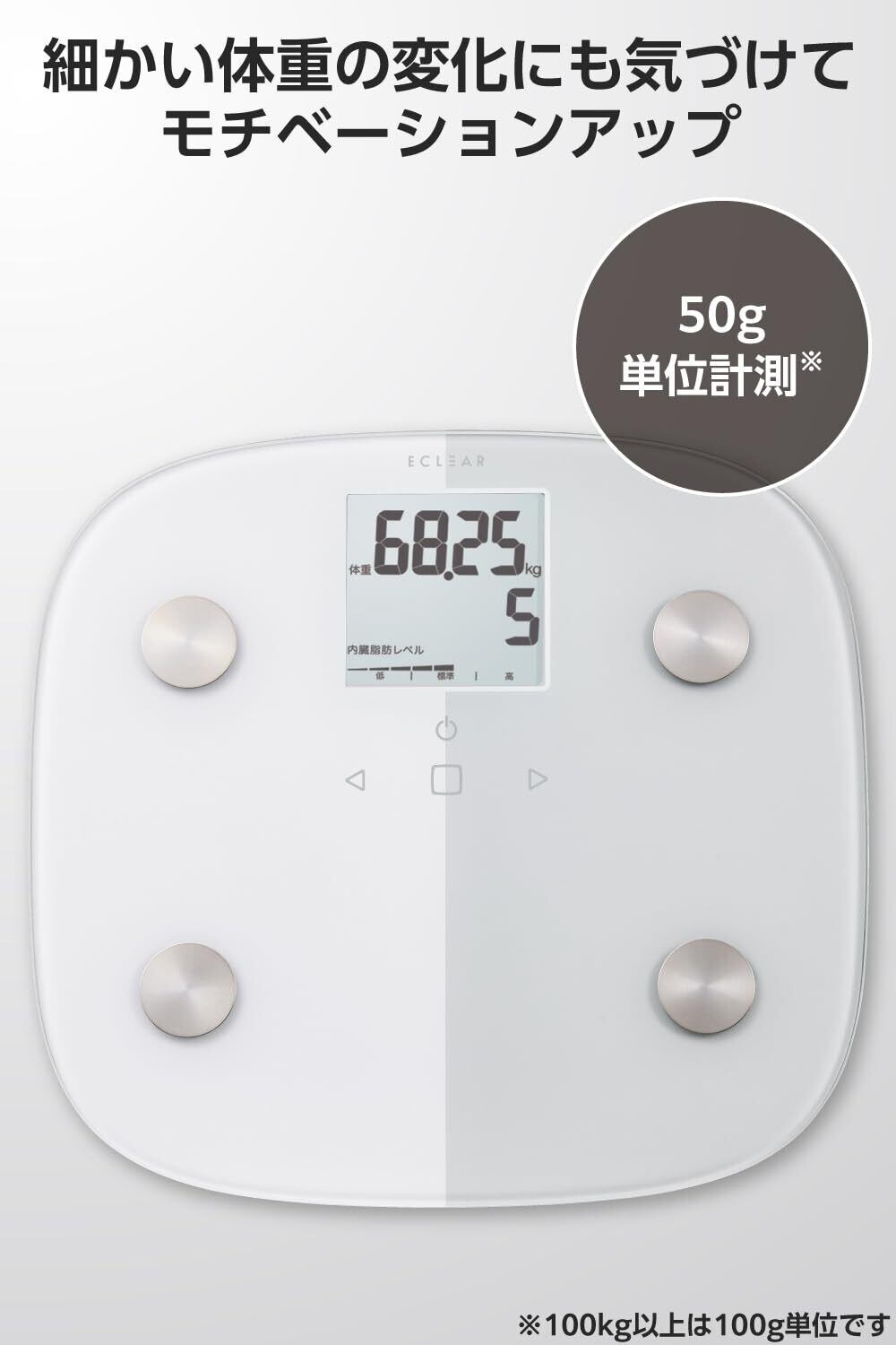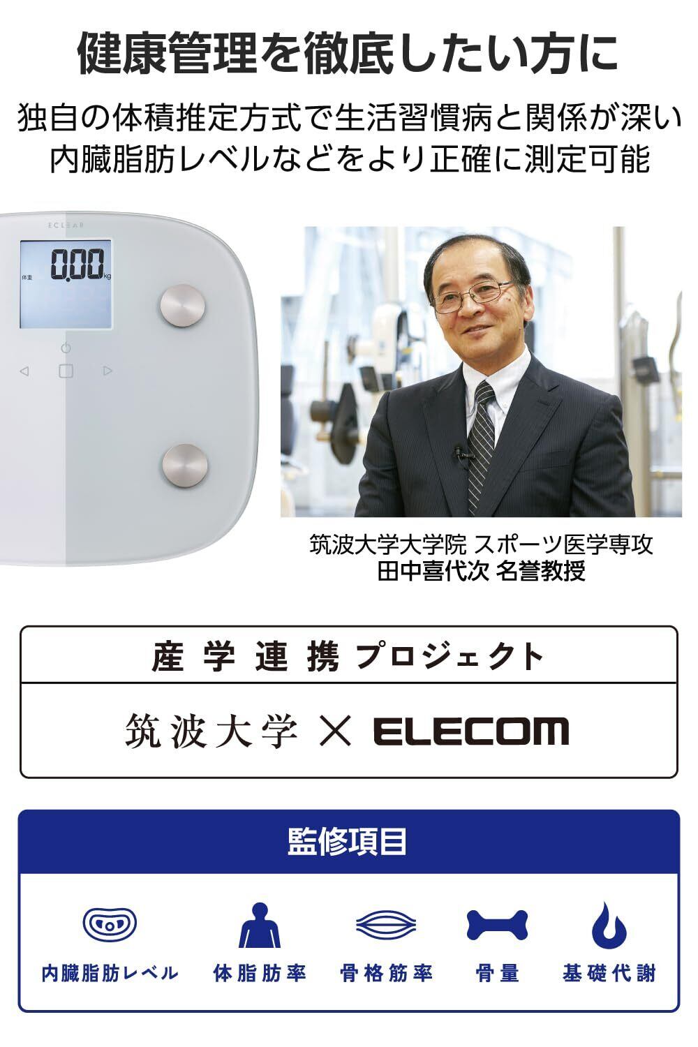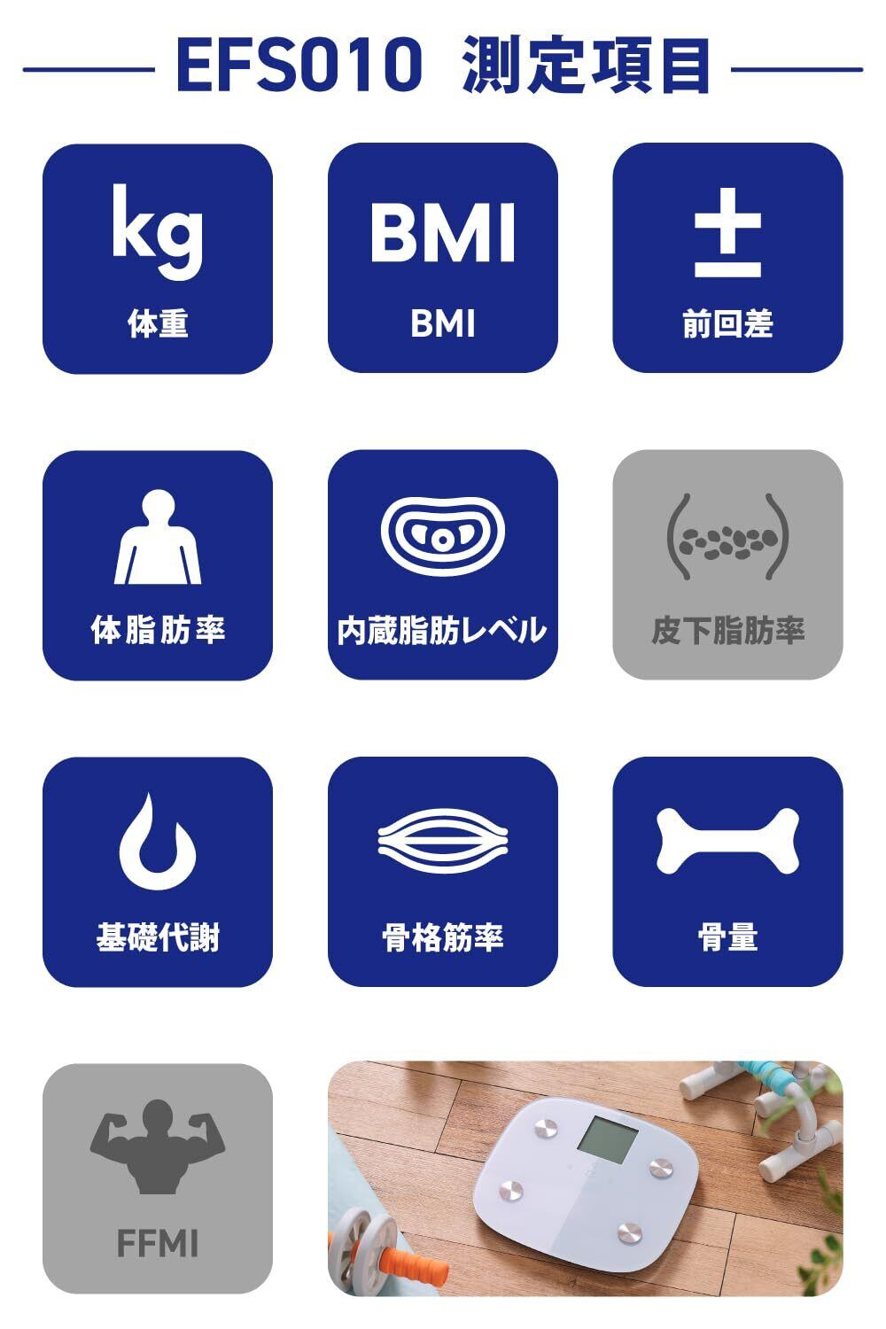 【新着商品】エレコム 体組成計 体重計 50g単位 バックライト付 8項目 [ 体重・前回差・内臓脂肪レベル・BMI・体脂肪率・骨格筋率・骨量・基礎代謝 ] 自動認識機能 スマホ連動 (データ手動入力式) ホワイト EFS010WH