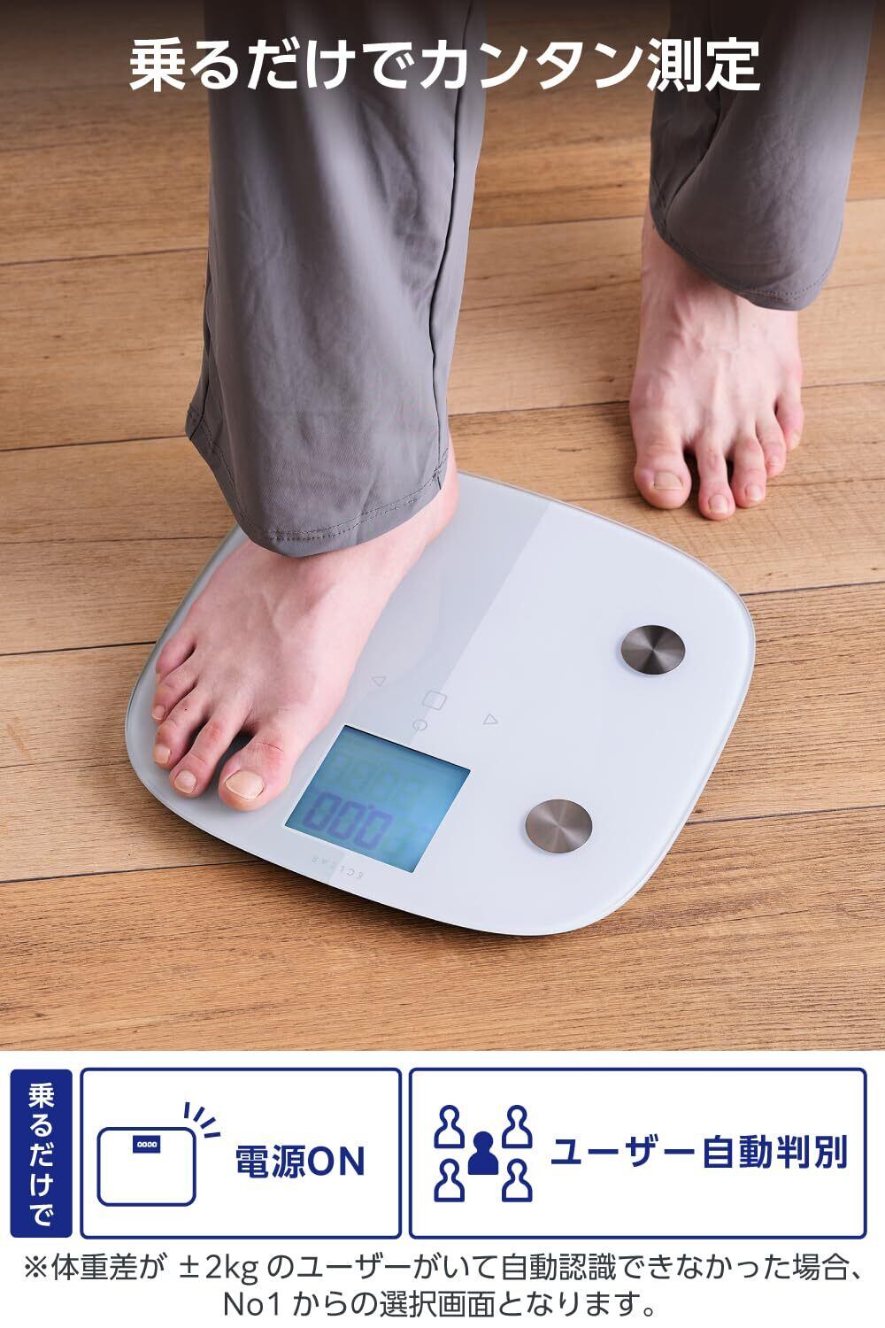 エレコム 体組成計 体重計 50g単位 バックライト付 8項目 [ 体重・前回差・内臓脂肪レベル・BMI・体脂肪率・骨格筋率・骨量・基礎代謝 ] 自動認識機能 スマホ連動 (データ手動入力式) ホワイト EFS010WH