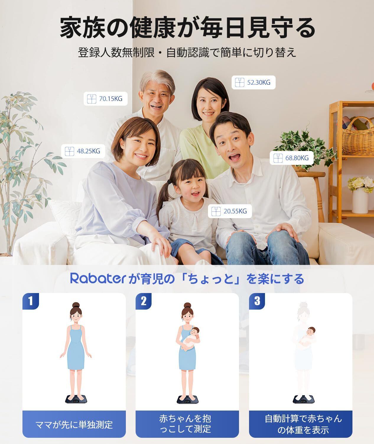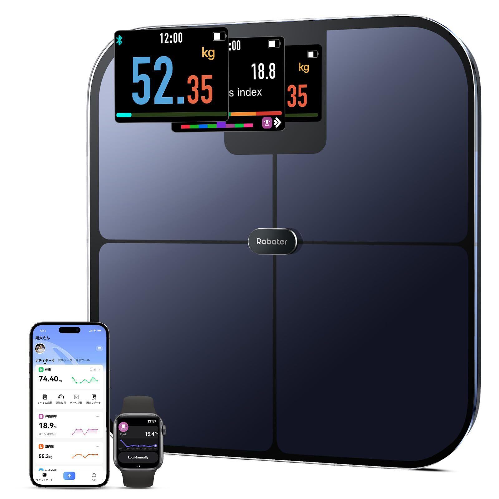 【2025最新】Rabater 体重·体組成計 CF588BLE 25項目測定 ITO技術 体脂肪計 心拍数測定 体重計 スマホ連動 Bluetooth5.1 専用アプリ データ自動記録 高精度 正確 180kgまで対応 赤ちゃんモード 体脂肪率/BMI/筋肉量/基礎代謝 日本語説明書