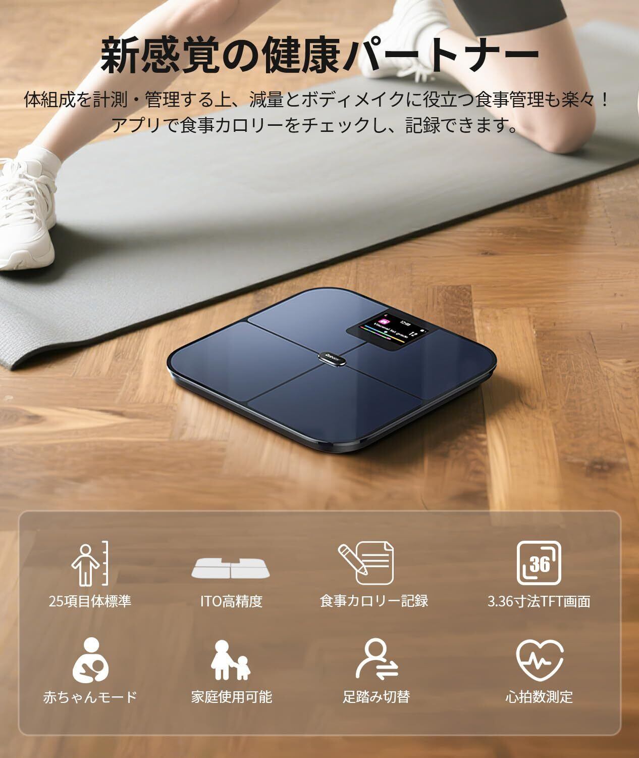 Rabater 体重·体組成計 CF588BLE 25項目測定 ITO技術 体脂肪計 心拍数測定 体重計 スマホ連動 Bluetooth5.1 専用アプリ データ自動記録 高精度 正確 180kgまで対応 赤ちゃんモード 体脂肪率/BMI/筋肉量/基礎代謝 日本語説明書