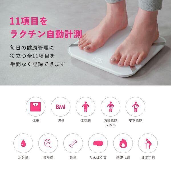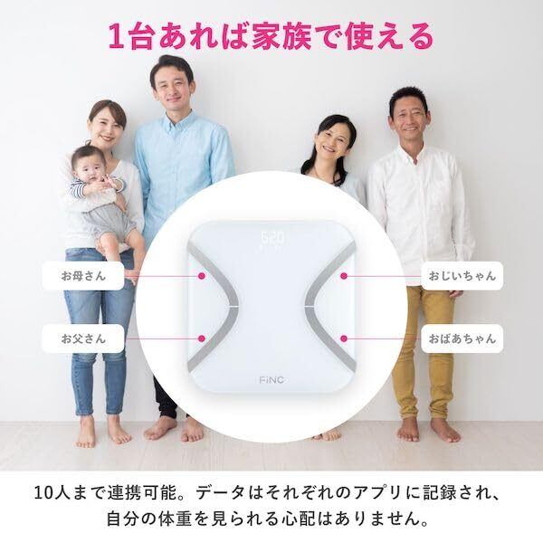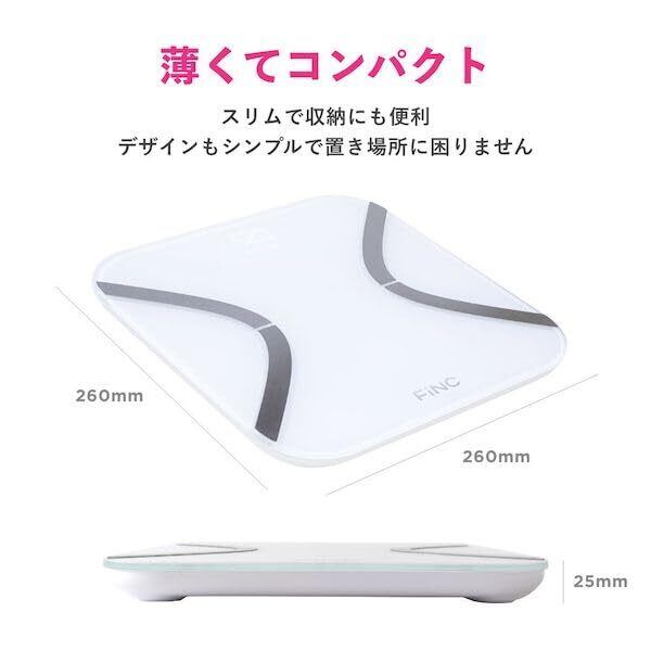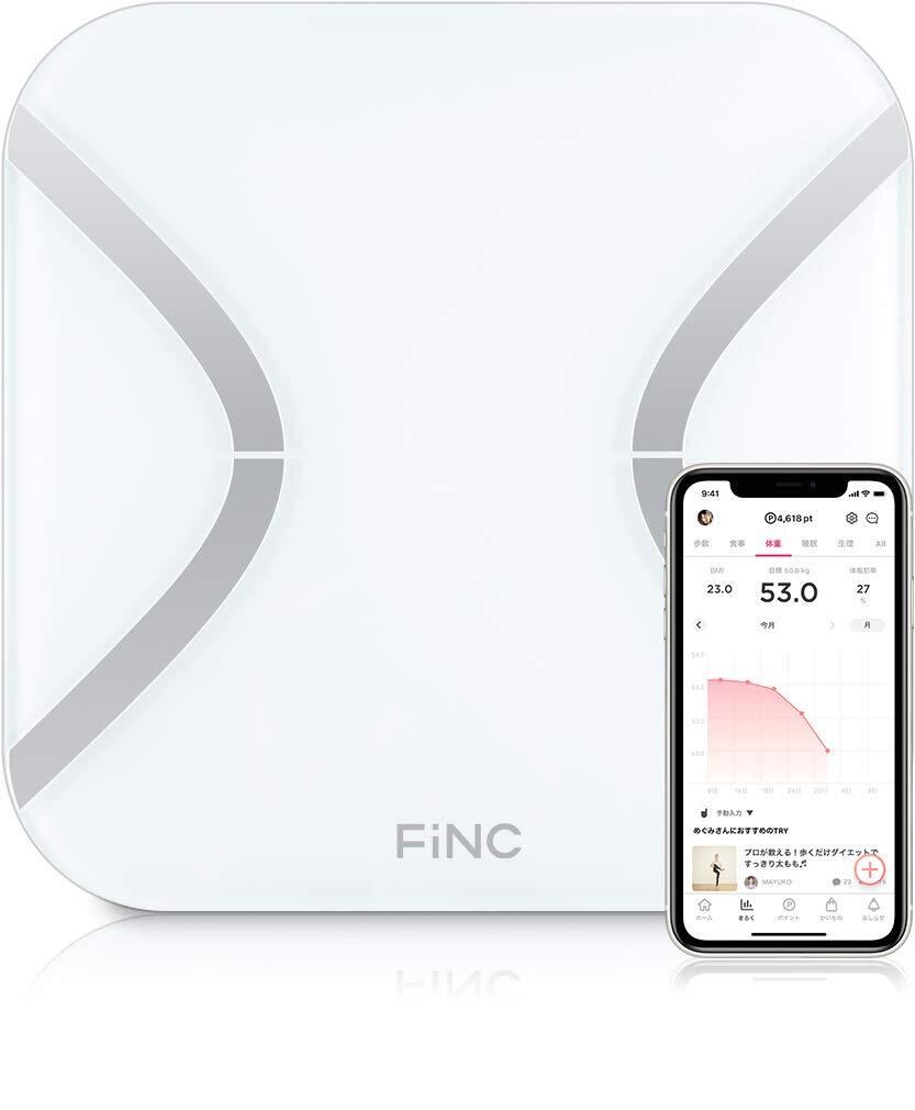 【新着商品】FiNC(フィンク)オリジナル体組成計(CS20E-mini)【スマホ連動/自動記録/Bluetooth/高性能体重計 体重/BMI/内臓脂肪/体脂肪/体年齢/基礎代謝/皮下脂肪 11項目測定】SmartScale iPhone&Android対応 ヘルスメーター カラダスキャン 日本製アプリ連動
