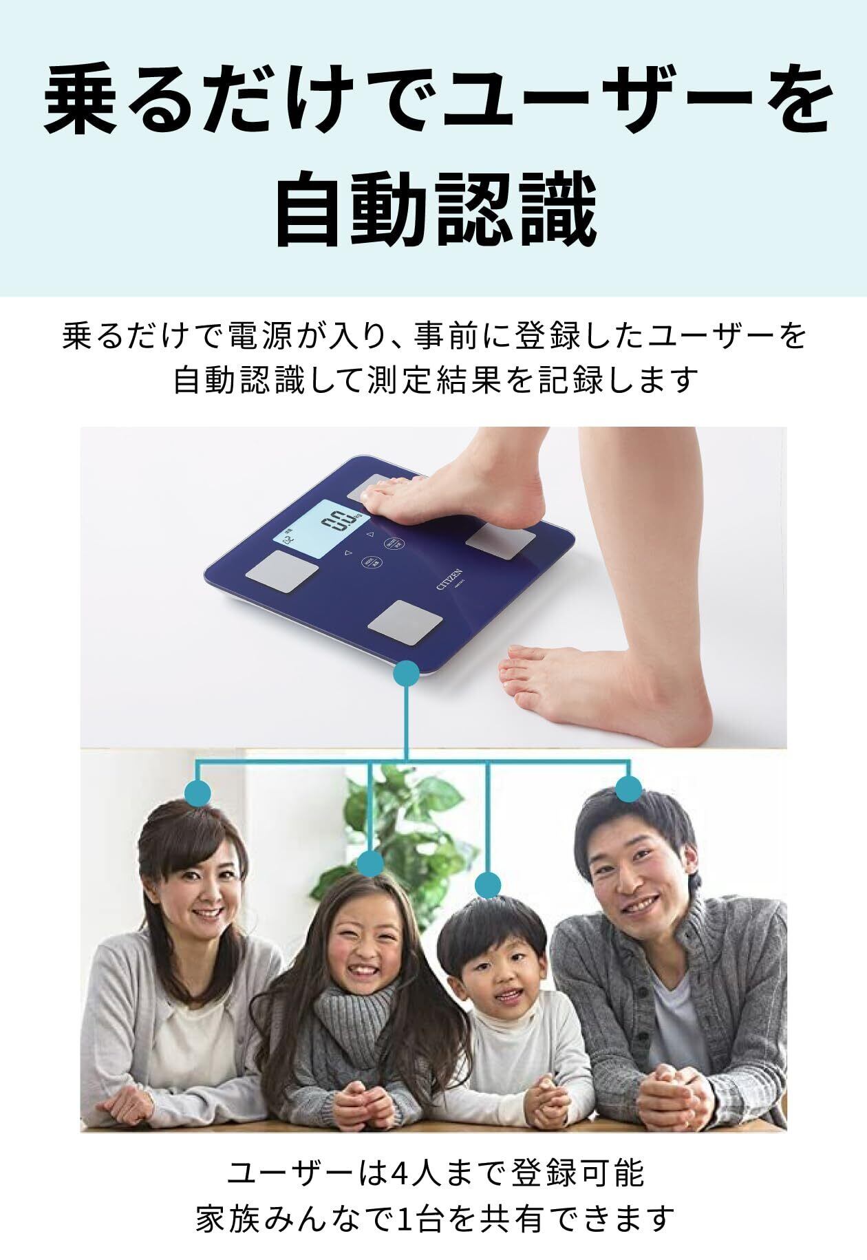 CITIZEN 体重計 スマホ連動 体組成計 グラフ管理 10項目 体脂肪率 筋トレで使える骨格筋率測定 HMS721C-DE 強化ガラス 採用 4人登録可 大型液晶 バックライト ヘルススキャン ディープネイビー シチズン
