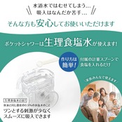 【生理食塩水が使用可能】生理食塩水とは0.9%の食塩水で体液と同じ濃度のためむせにくく吸入ができます。生理食塩水の作り方は付属の計量スプーンすりきり1杯の食塩を給水ユニットに入れて混ぜるだけ。
