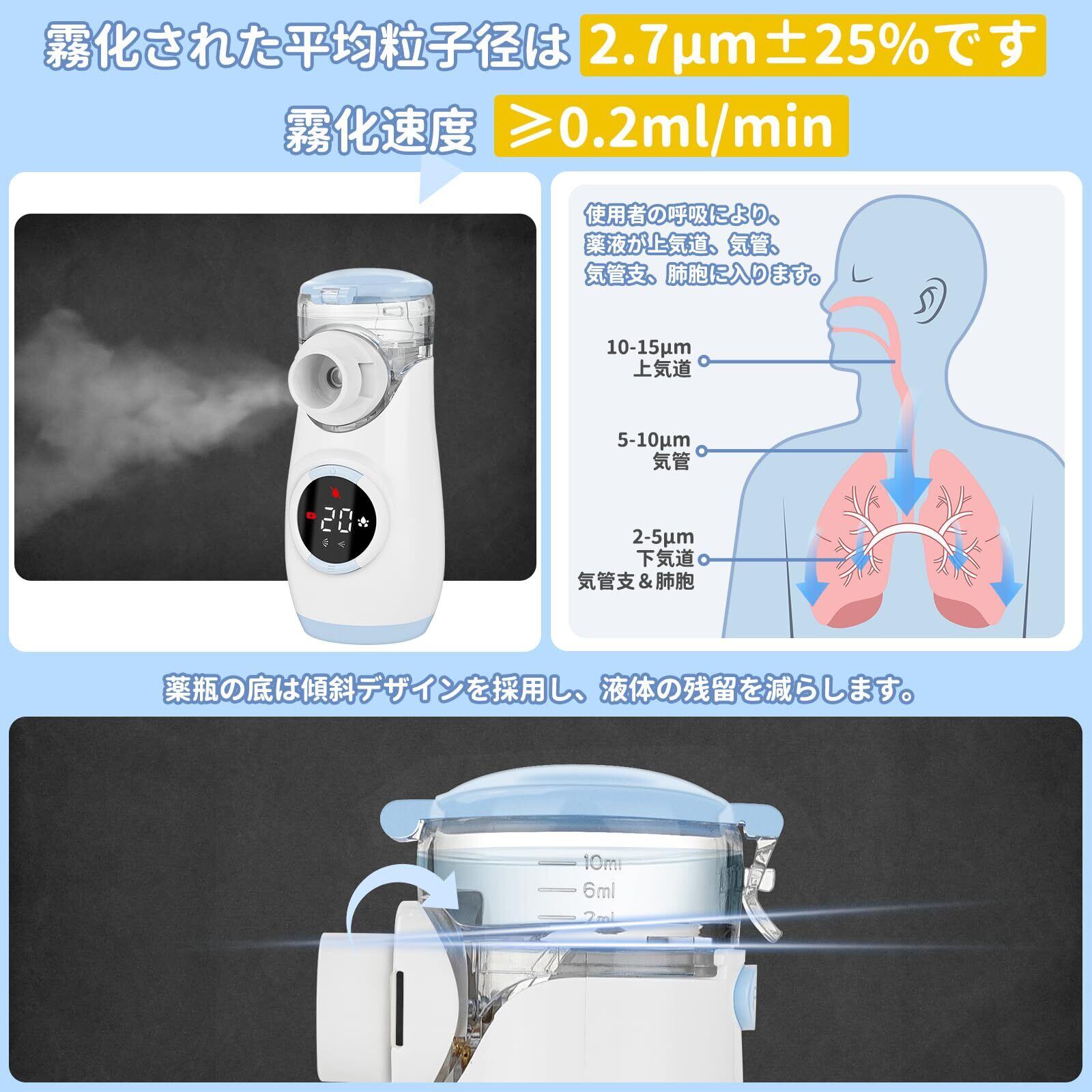 Watles メッシュ式ネブライザー 【新機能・体験の向上】ネブライザー 家庭用吸入器 Type-C充電式 水道水使用可能(精製水禁止) 薬液用 デジタルディスプレイ搭載の充電式吸入器 大人用/子供用 静音 携帯用 自動洗浄機能 家庭用 MY-135B (ブルー)