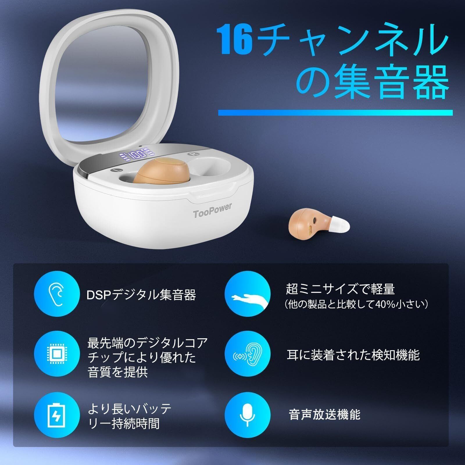 TooPower 集音器 しゅうおんき 高齢者 左右両耳 小型 イヤホン型 簡単タッチボタン LEDパワーデジタルディスプレイ Type-C充電式 軽量 3つのモード、5段階の音量調節音声放送 DSPノイズ低減 テクノロジー 搭載 デュアルマイクで 音質良 両親 敬老の日 母の日 父の日