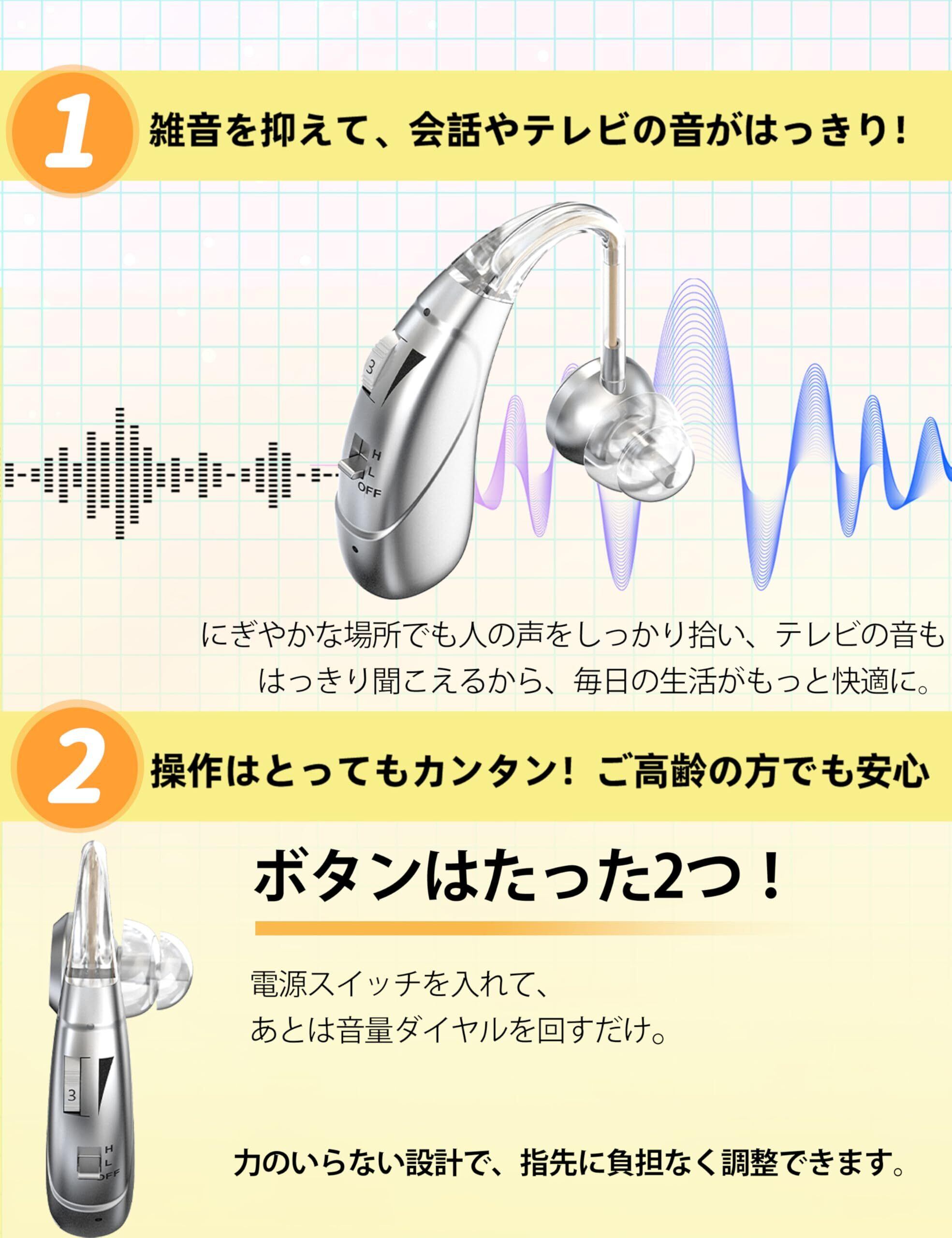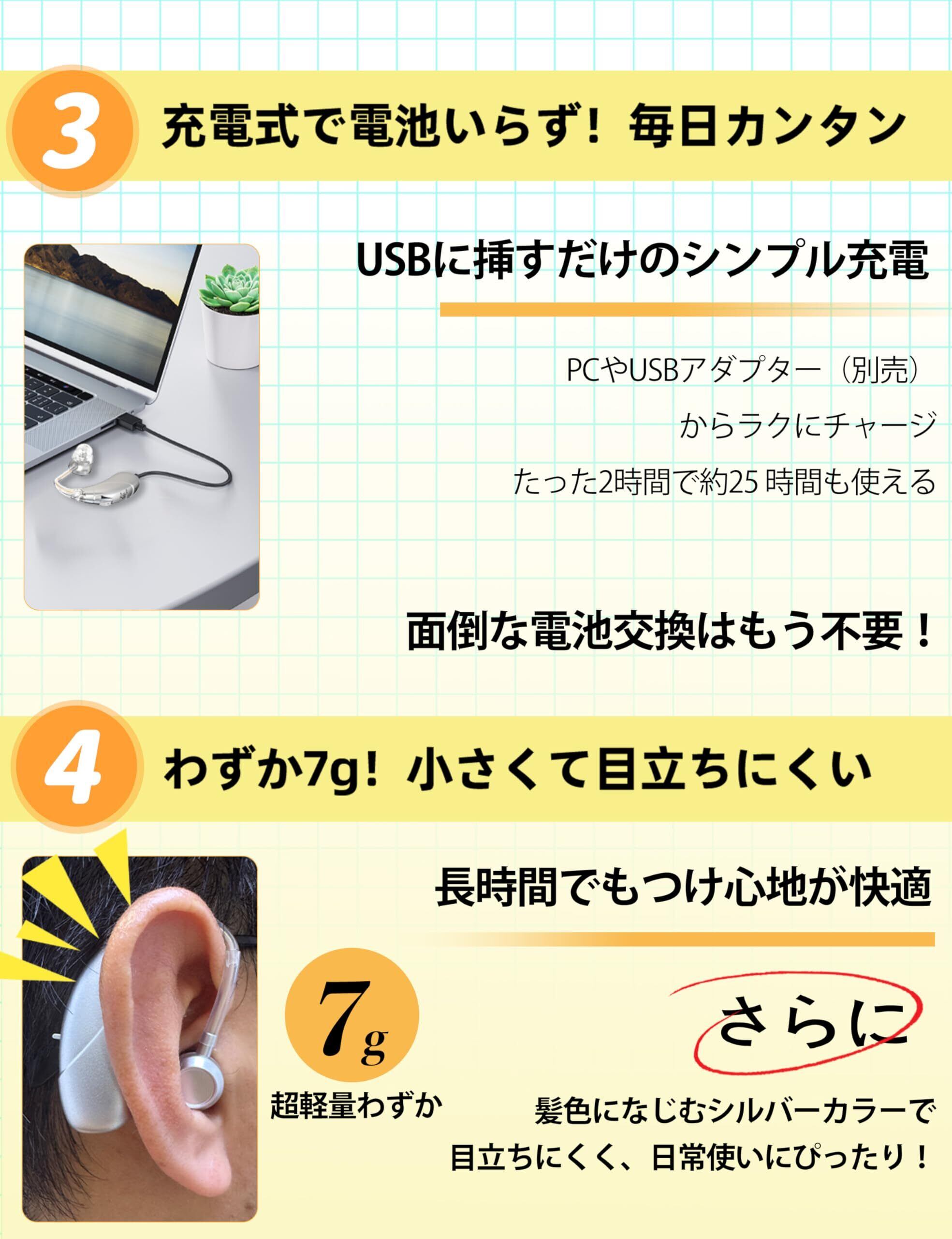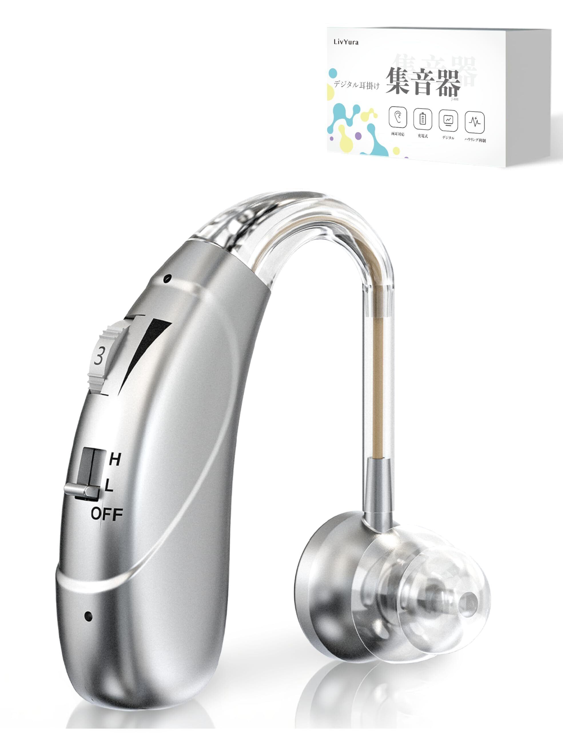 集音器 耳掛け型 デジタル 4段階音量調整 操作簡単 高齢者に優しい ソフトチューブ付き 耳痛くない 充電式 25時間連続使用 銀髪に馴染むシルバー 男女兼用 贈り物 敬老の日 プレゼント