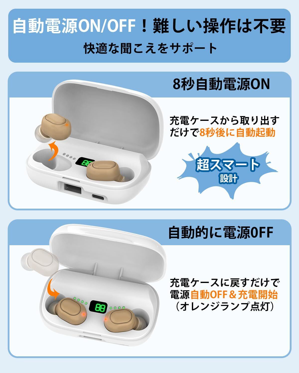 【電源が自動ON/OFF! 面倒な操作から解放されよう】しゅうおんきは充電ケースから取り出すだけで8秒後自動に起動、使用後はケースに戻すだけで自動的に電源が切れるだけでなく、同時に充電が開始されます。集音器充電中はオレンジライトでお知らせ、充電完了で消灯します。スマートで便利、もう操作の手間なし!高齢者の方でも迷うことなく使える、革命的なユーザーフレンドリー設計です。※ハウリング防止のため、マイク部分を手や衣類で覆わないようご注意いただけます。
