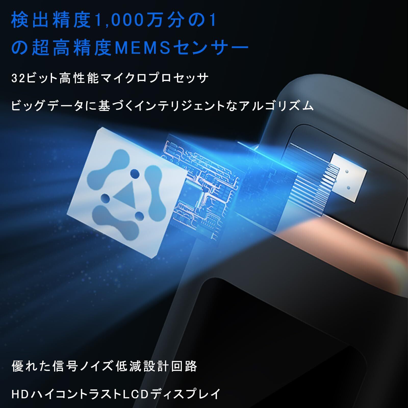 【超高精度&非接触型】口臭検知器は、超高精度MEMSセンサーを搭載しています。検出精度1,000万分の1、これらのセンサーにより、口臭濃度値をより迅速かつ正確に検出することができます。マウスピースを使用していないので、とても衛生的です。1センチの距離で息を吐き測定することができ、1人以上で使用することができます。