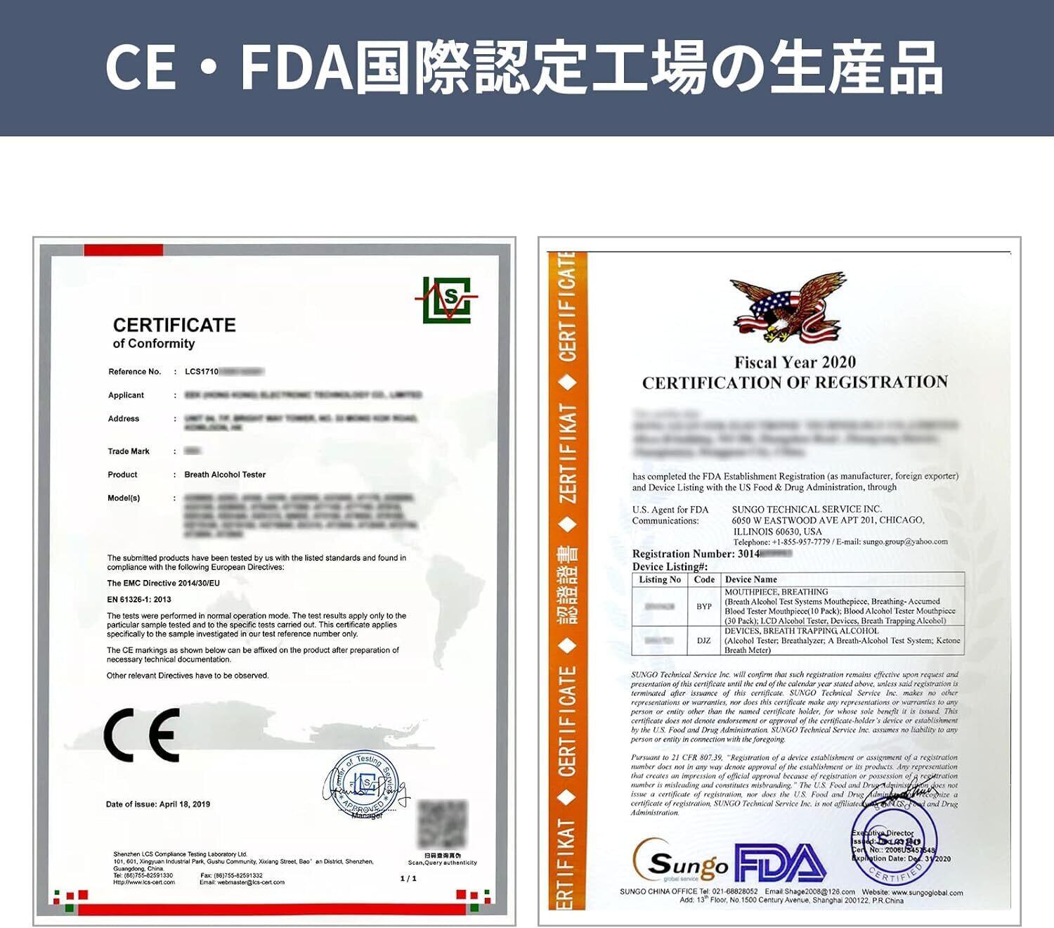 【使用方法】1. 電源ボタンを押して下さい。2. ウォームアップのカウントダウンが終わったら、吹き込み口にできるだけ口を近づけて(約5ミリ)息を約5秒間 吹きかけます。3. 測定完了の電子音が鳴り、測定結果が表示されます。※ 測定範囲は0.000〜1.000mg/Lです。(0.005mg/L単位で表示)【注意事項】国家公安委員会が定めるアルコール検知器としてご使用いただけます。 本機の使用の有無(判断結果を含む)に関わらず、飲酒運転に関しては一切責任を負いません。