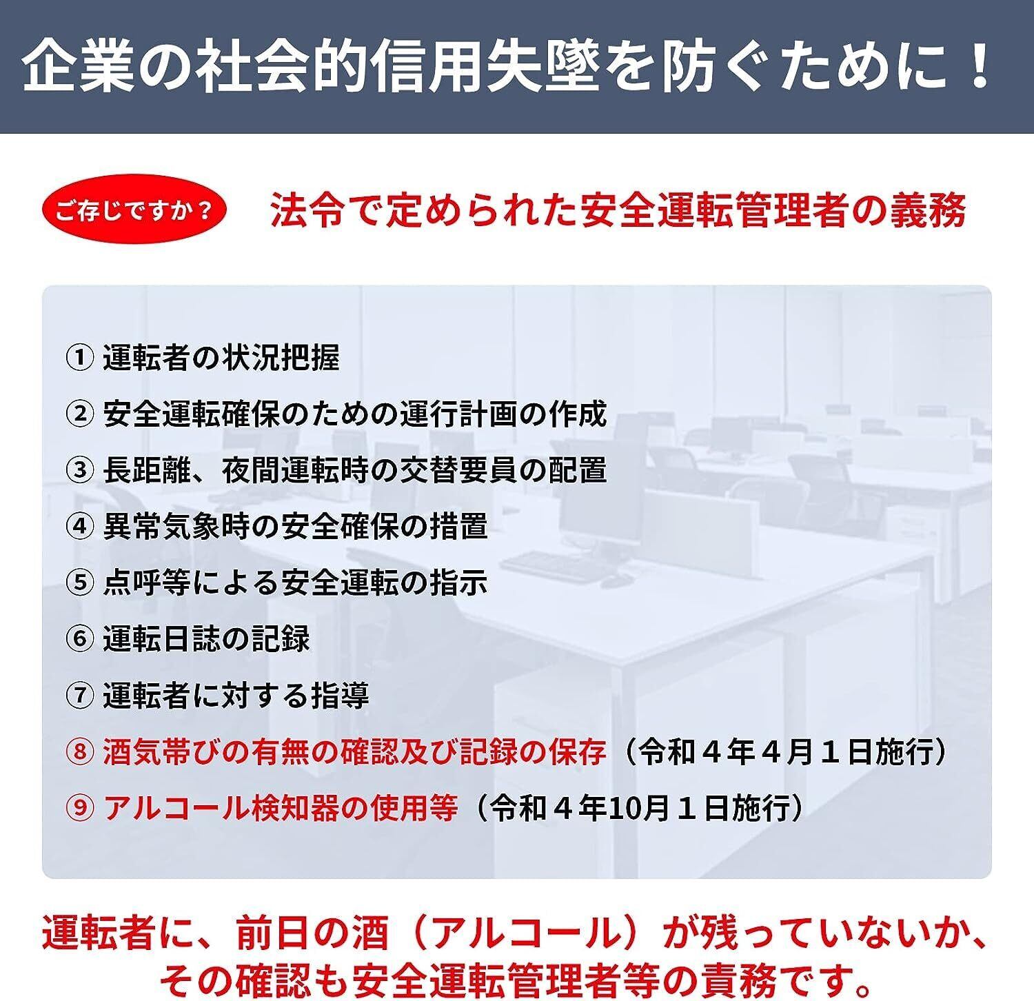 【超高性能・超高精度】アルコールチェッカーは高精度半導体ガスセンサー使用し、安全に運転できるかどうかを確認するために、5秒だけでアルコール濃度を検出できます。は高感度ICチップ内蔵で、測定準備時間は10秒で、測定時間は10秒です。測定完了後約20秒で自動OFFになります。【注意事項】国家公安委員会が定めるアルコール検知器としてご使用いただけます。 本機の使用の有無(判断結果を含む)に関わらず、飲酒運転に関しては一切責任を負いません。