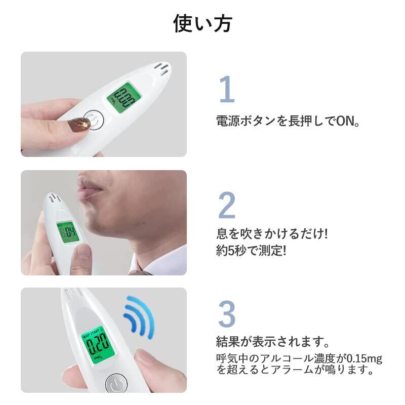 【適用範囲が広い・一年・B2B対応】:運送業者様・旅客業者様のアルコールチェッカーの使用が義務化されます。本アルコール検知器は事業用がもちろん、一般な家庭でも一家一台の必需品です。の飲酒チェッカーは安心な1年付きます。使用中、製品の使用について何か不明なところが御座いましたら、ご心配なさらないで注文履歴より弊店までご連絡ください。B2Bも提供できます。