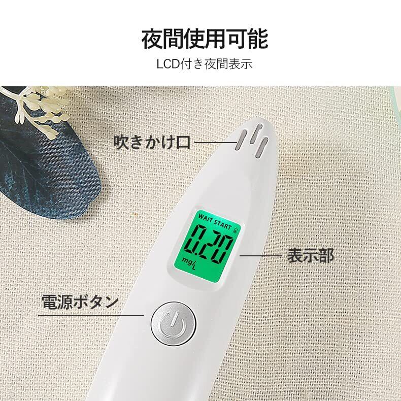 【吹込式・非接触式アルコールチェッカー】:非接触式のセンサーを採用し、息を吹きかけるだけで簡単にアルコール濃度を測定可能です。直接口を触れずに使用できるため、清潔さを保ちつつ、複数人での使用も安心して行えます。清潔で安全なアルコールテストを、どこでも簡単に実現します。