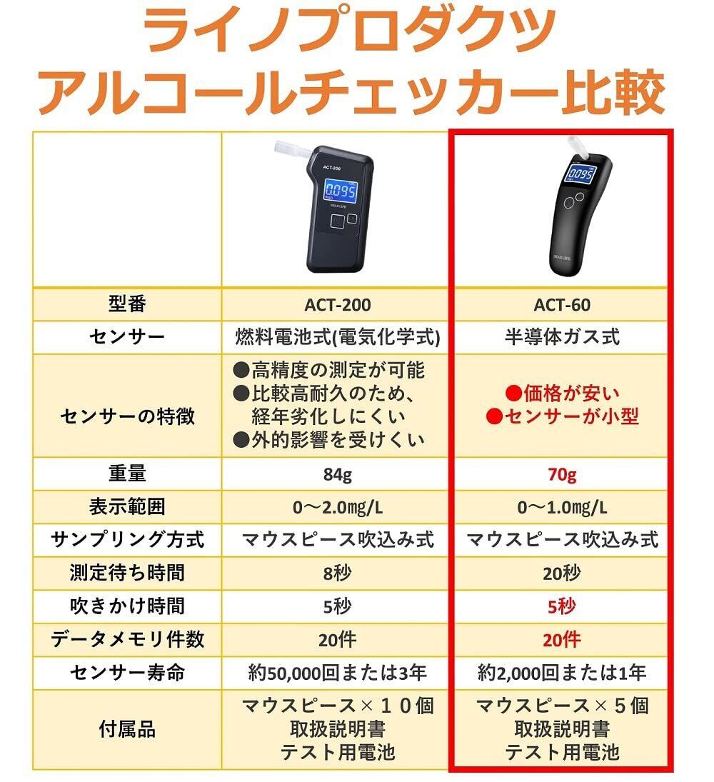 ライノプロダクツ 半導体センサー式アルコールチェッカー 日本国内メーカー 業務用 ACT-60 [国家公安委員会が定めるアルコール検知器]