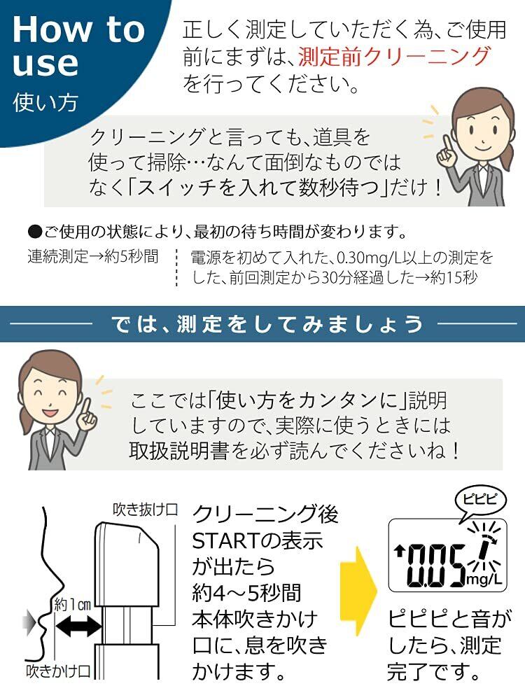 付属品:本体、お試し用電池(単4形アルカリ電池×1パック4本)/センサー寿命:購入後1年経過または1,000回測定した場合のどちらか早い方