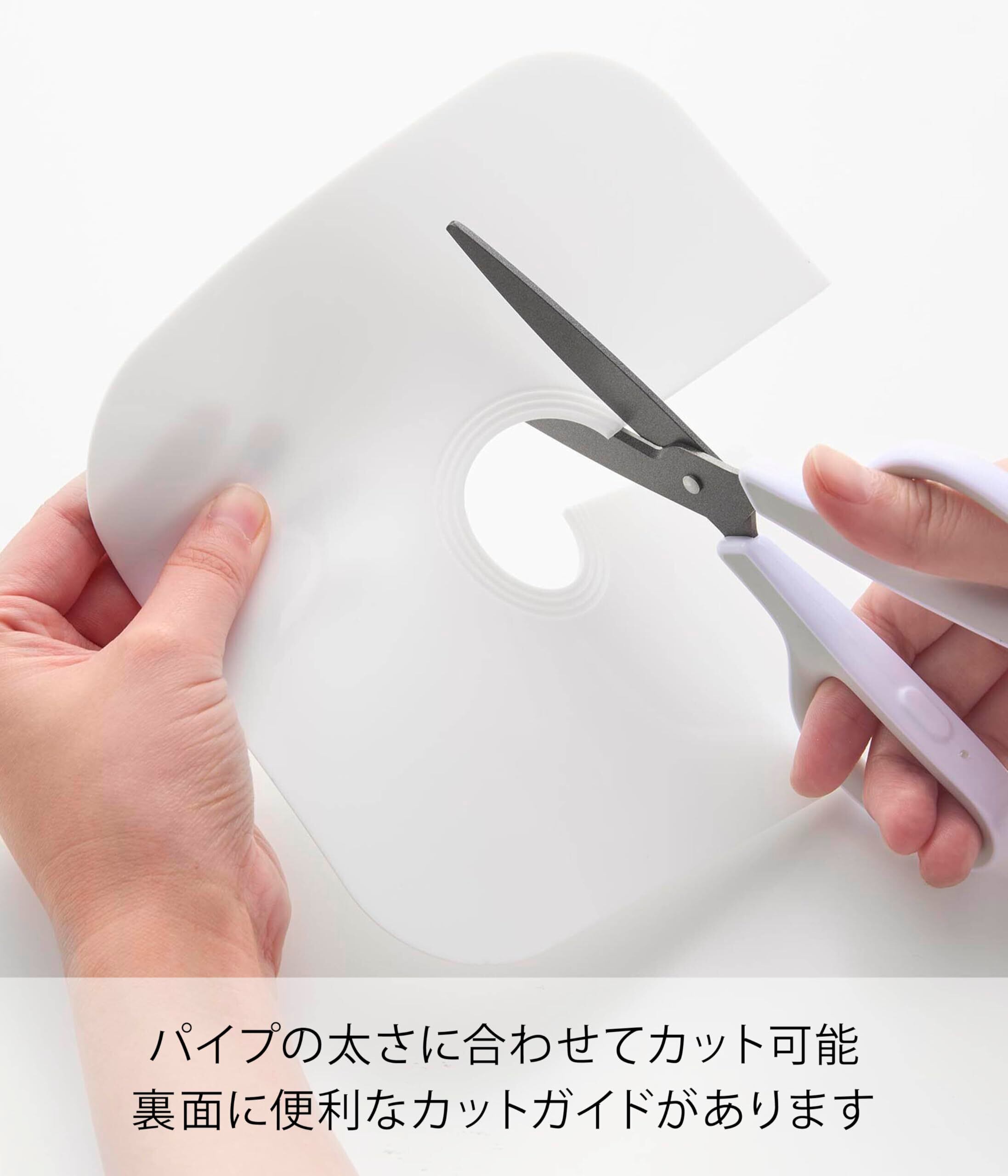 裏面にはカットしやすいカットガイドがあるので排水ホースの太さに合わせて簡単にカットできます。