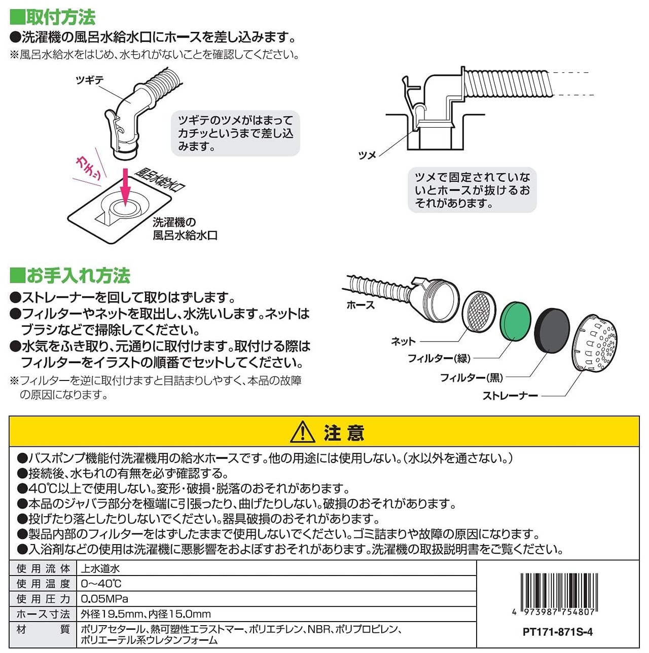 SANEI(サンエイ) 風呂水給水ホースセット 長さ4M バスポンプ機能付洗濯機用 Wフィルター付 PT171-871S-4 グレー