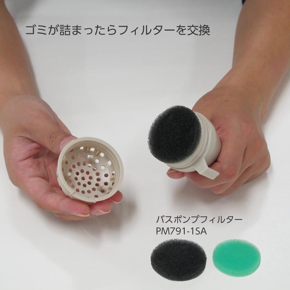 【お手入れ方法】●ストレーナーを回して取り外します。●フィルターやネットを取り出し、水洗いします。ネットはブラシなどで掃除してください。●水気をふき取り、元通りに取り付けます。取り付ける際はフィルターをイラストの順番でセットしてください。※フィルターを逆に取り付けますと目詰まりしやすく、本品の故障の原因になります。
