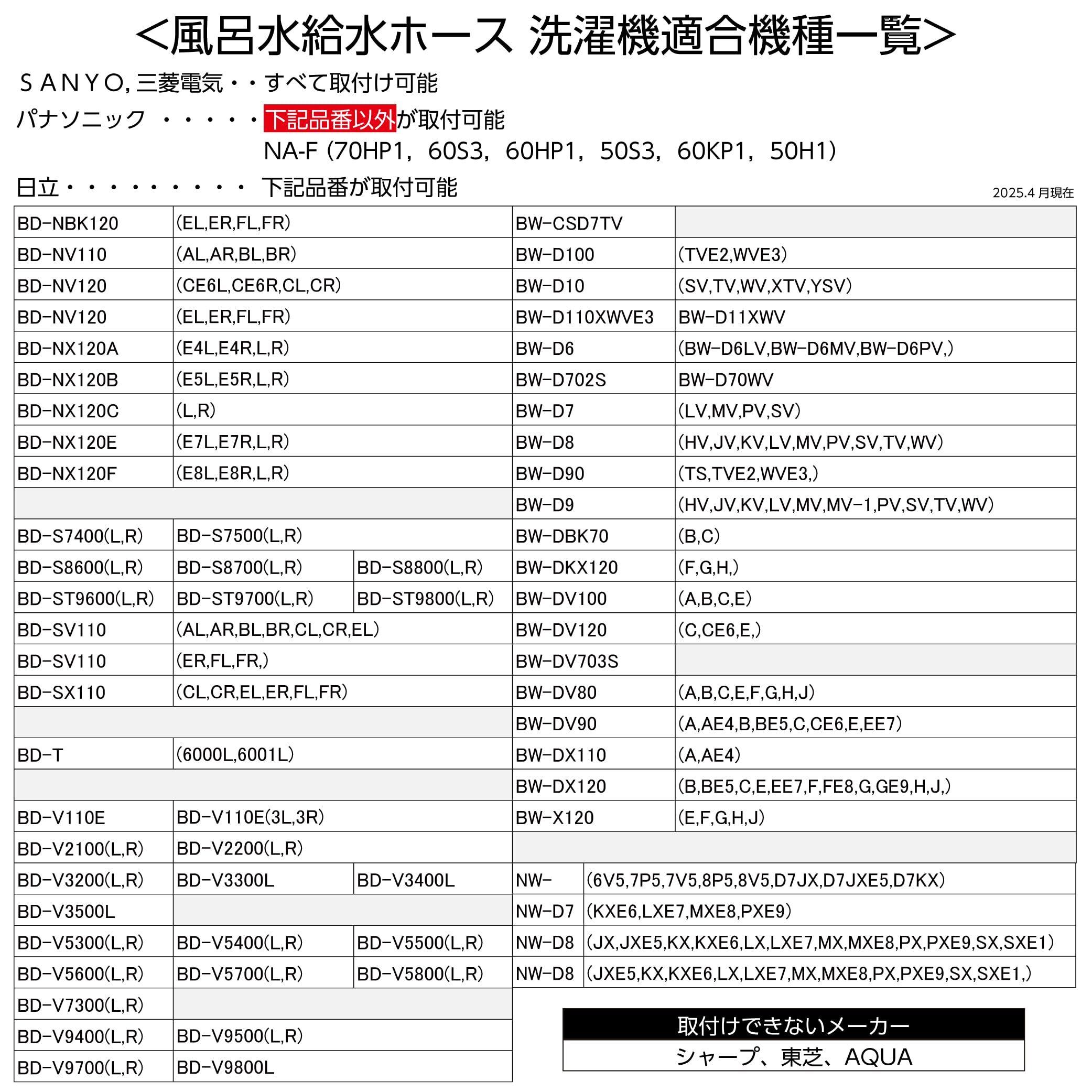 【取付可能なメーカー】三洋電機・三菱電機の風呂水給水機能付き全自動洗濯機すべて/パナソニック[NA-F70HP1・NA-F60HP1・NA-F60KP1・NA-F60S3・NA-F50S3・NA-F50H1を除く]の風呂水給水機能付き全自動洗濯機すべて・日立製作所[適合品番は、商品説明欄に記載]