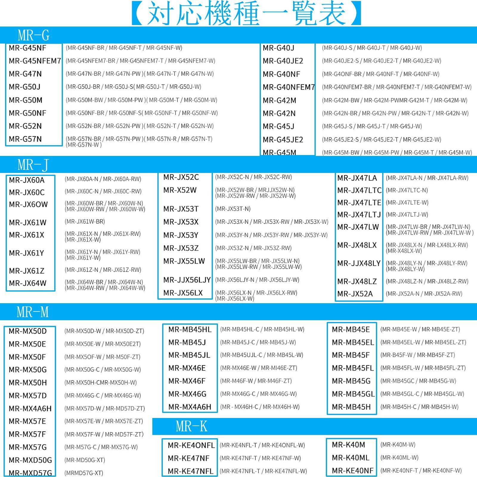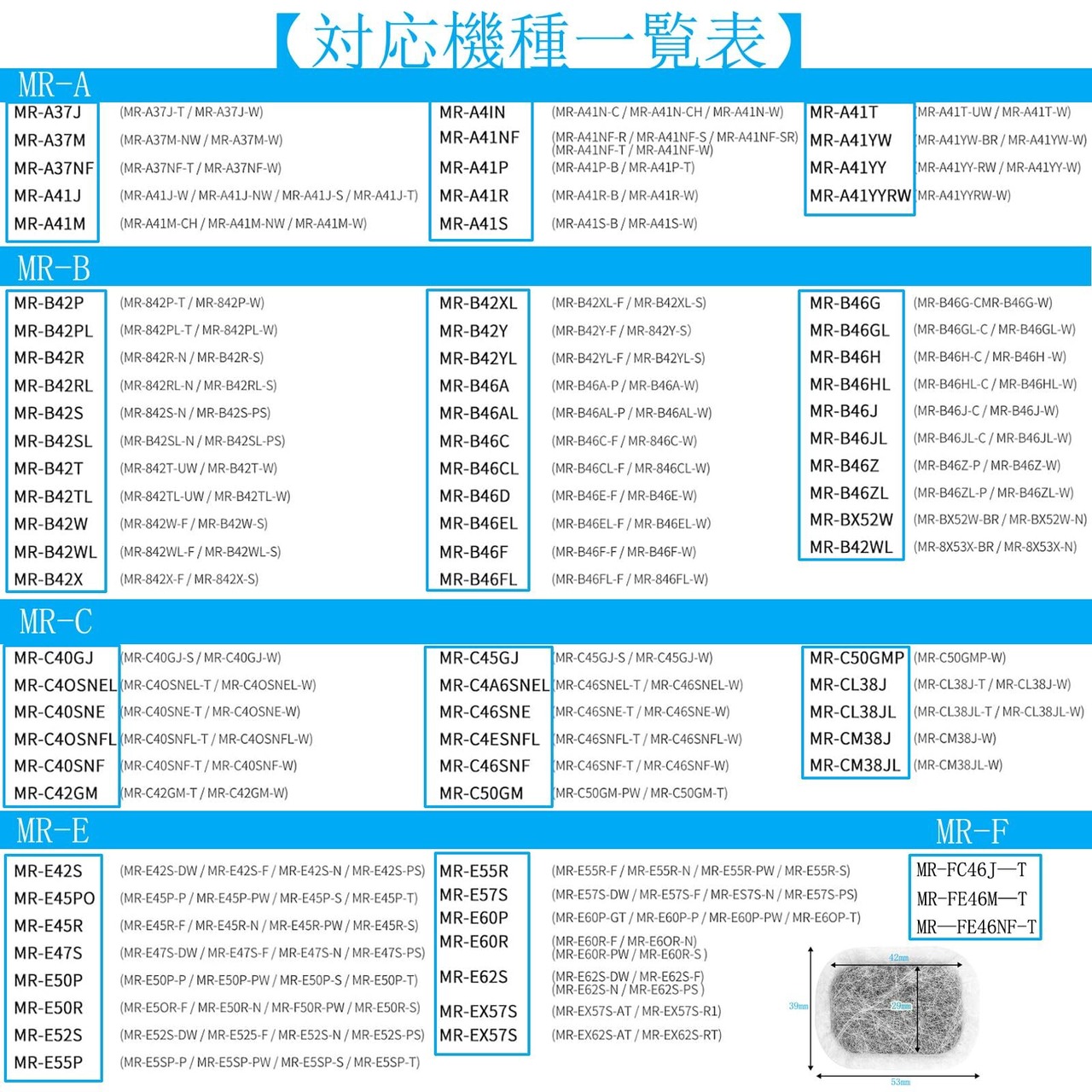 【対応機種】 MRPR-01FT、MR-JX52W、M20VJ5526、MR-JX53Z、MR-JX61Y、M20KW0526、M20KWO526、MR-JX60W、MR-MB45E、MR-WX47C、MR-WX71Z、MR-B46D、MR-RX47T、MR-RX52T、MR-WX60A、MR-MX50F、MR-MX57D、MR-B46A、MR-R47W、MR-WX47D、M20CM5526、MR-A37JT、MR-A37M、MR-A37NF、MR-A41J、MR-A41JS、MR-A41M、MR-A41N、MR-A41NF、MR-A41NFS、MR-A41R、MR-A41SB、MR-A41T、MR-A41YW、MR-A41YY、MR-B42T 三菱冷蔵庫製製氷機専用のフィルターです。多くの三菱冷蔵庫のアイスメーカーに対応していますが、具体的な機種については写真と製品説明をご参照ください。