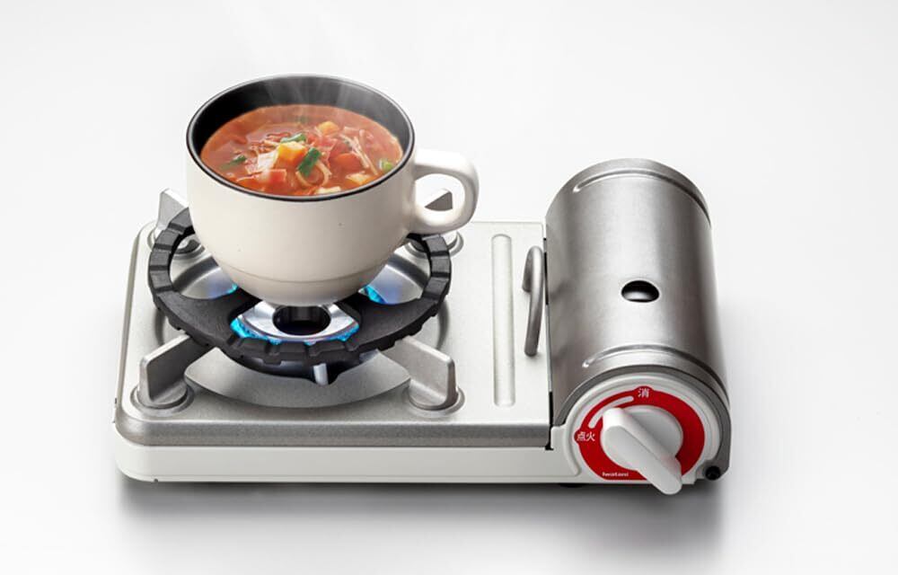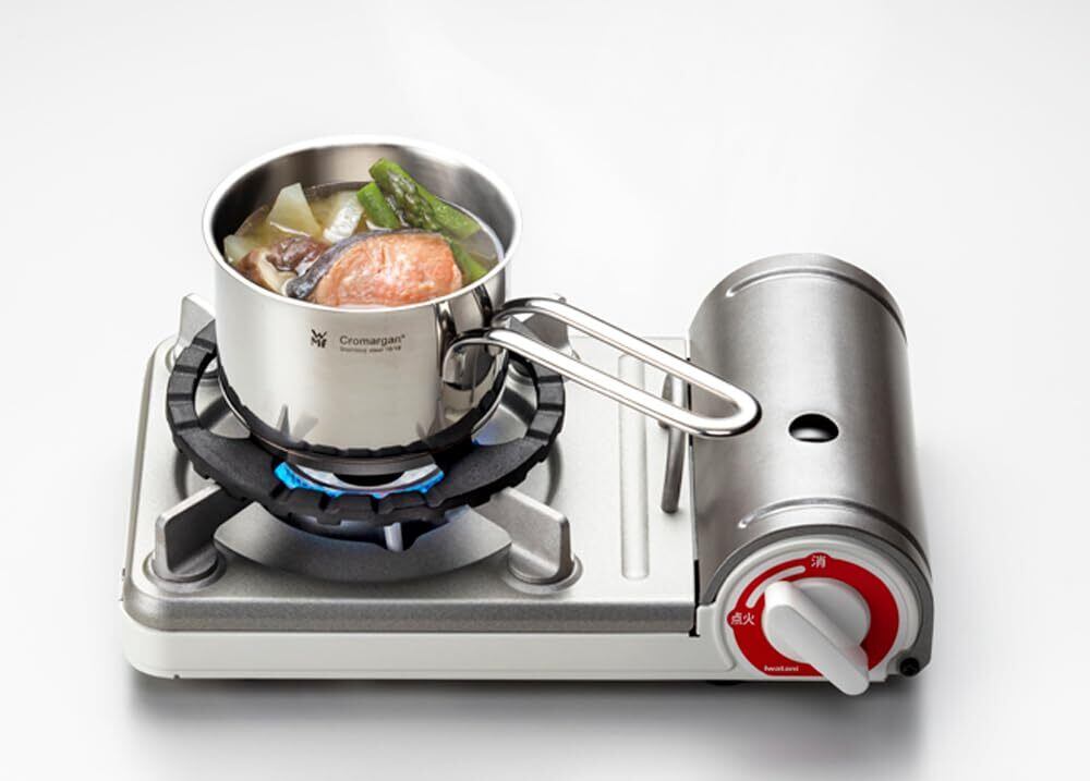 歯車形状で五徳に噛み合い、セットするだけで小鍋等が安定して使えます。
