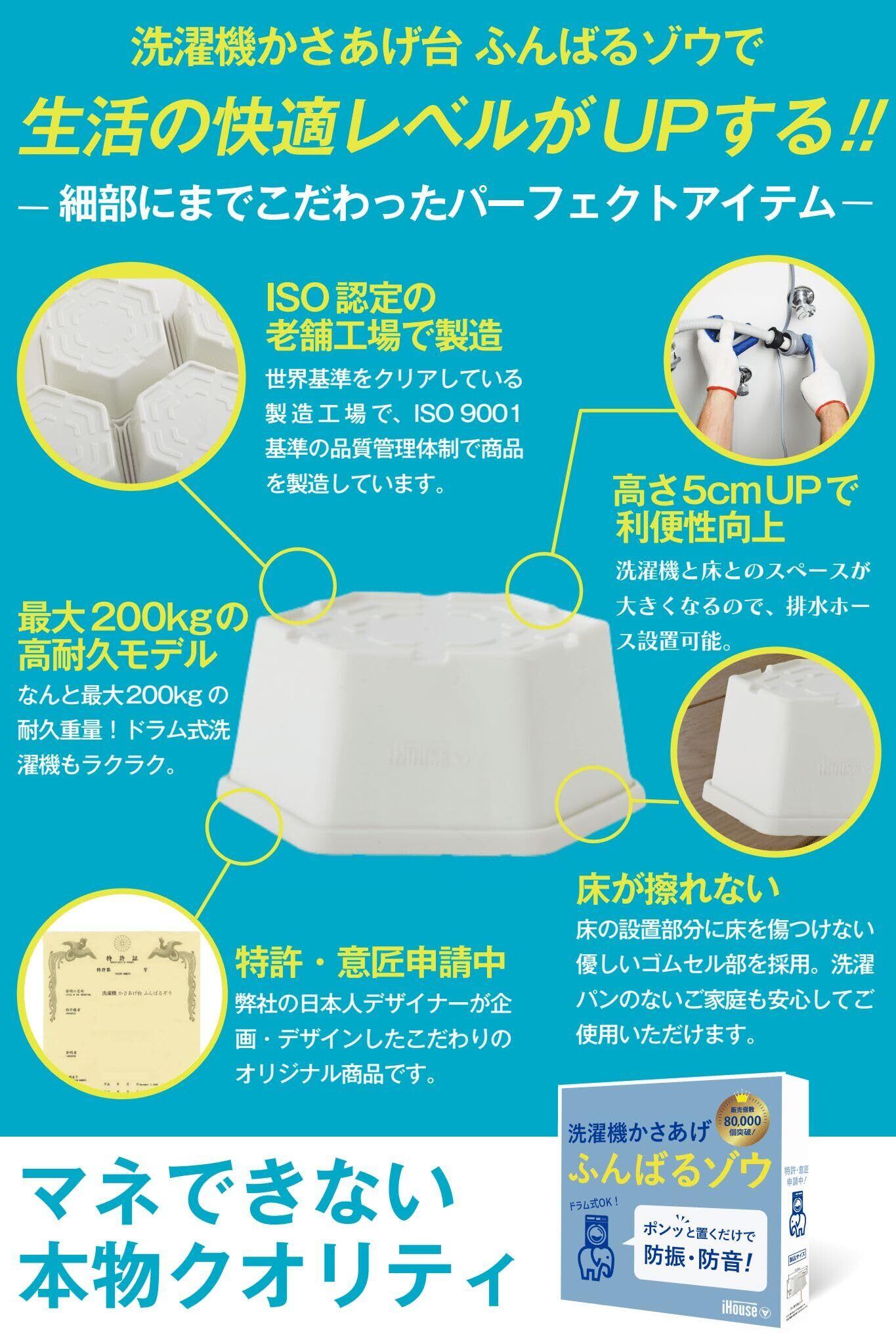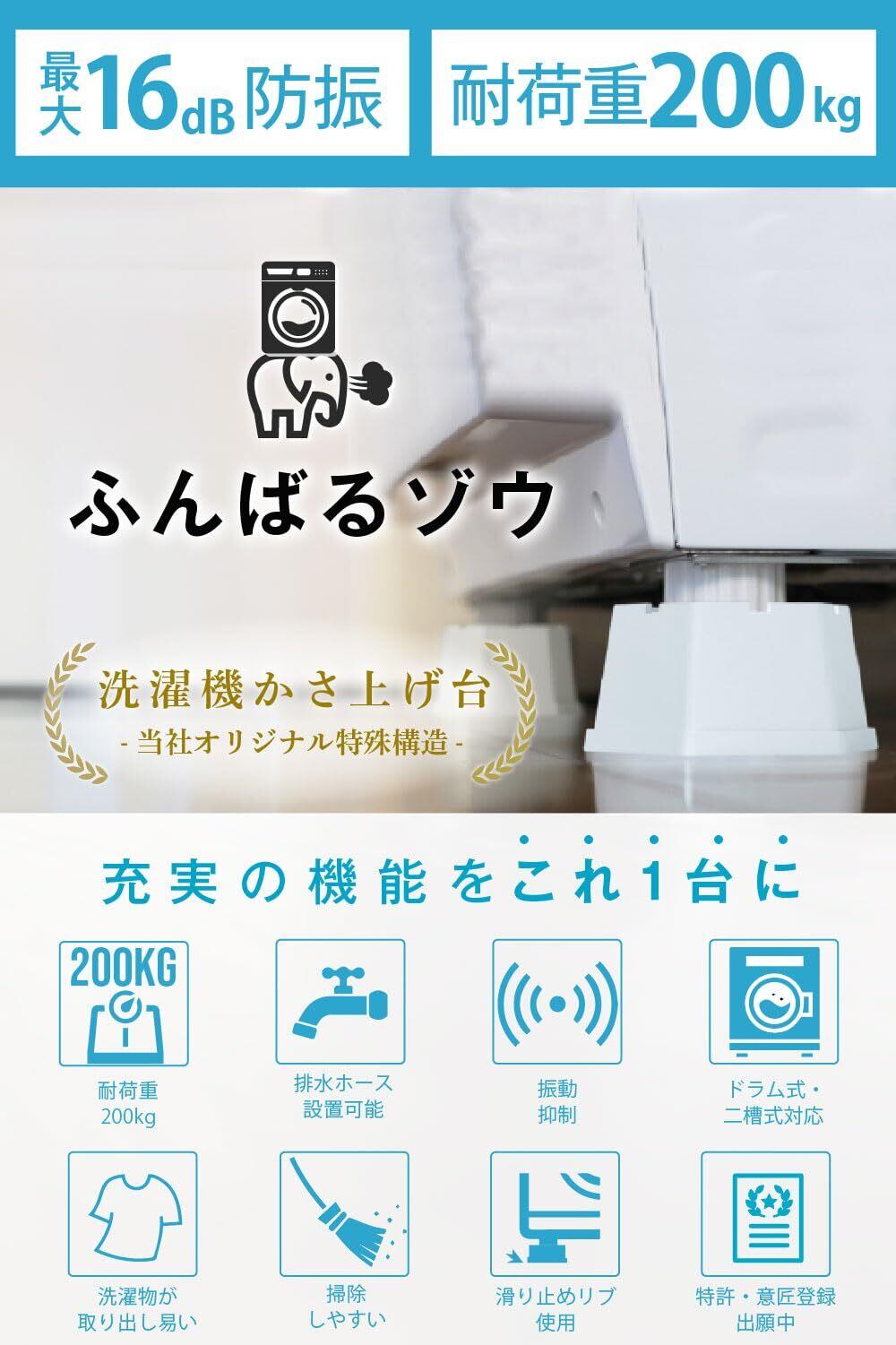 ふんばるゾウ 洗濯機かさ上げ台 洗濯機 台 洗濯機台 洗濯機置き台 かさ上げ台 かさ上げ 底上げ 高さ調整 防振 洗濯パン 洗濯機パン ドラム式洗濯機 乾燥機 (ホワイト)