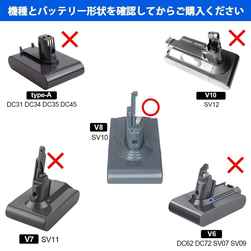 【兼用型/壁掛けブラケット対応】最新の改良版でDaroll v8-4000 ダイソンv8 バッテリーは純正2400mAhと2800mAhのバッテリー装着のV8(2017年9月前後)対応させていただきます。Dyson V8 Fluffy、Dyson V8 Fluffy+、DysonV8 Absolute、DysonV8 Absolute Extra、Dyson V8 Animalpro、Dyson V8 Motorhead対応し、それに、高容量だけではなく壁掛けブラケット対応もできます、ご安心して使用ください。35%アップの長時間の完全連続運転を実現しました。スイッチを入れたり切ったりする通常の掃除なら75分程度の稼働で家じゅうの掃除を可能にします。【ご注意】V6、V7、V10、SV11、SV12には適合しませんので、ご確認の上ご購入ください.【ご注意】「V10 ≠ SV10」、型番がV10の製品はV10 SV12シリーズです。ご確認の上でV10用バッテリーをご購入下さい。