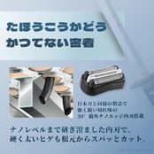 高精度カット:30度の鋭角ナノエッジ内刃を搭載し、太いひげも根元からスパッとカット。この設計により、効率的で深剃りを実現し、なめらかな仕上がりを提供します。ひげの形状や長さに関わらず、常に高い剃り性能を発揮します。