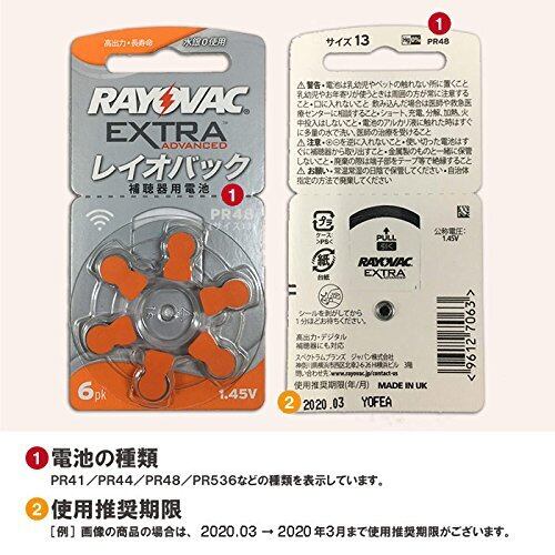 【数量限定】RAYOVAC RAYOVAC 補聴器用電池 PR48(13) 6粒入り 10シートセット