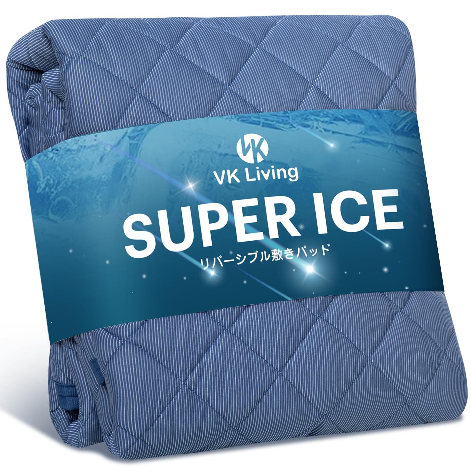 【数量限定】VK Living 敷きパッド 夏用 シングル リバーシブル 【SUPER ICE】 冷感 帝人TEIJIN中綿 しきぱっと 24時間持続制菌消臭 ひんやり 二重除湿速乾 シーツ オールシーズンで使える 吸湿速乾 洗える ベッドパッド 防ダニ 抗菌防臭 100×200cm ネイビー