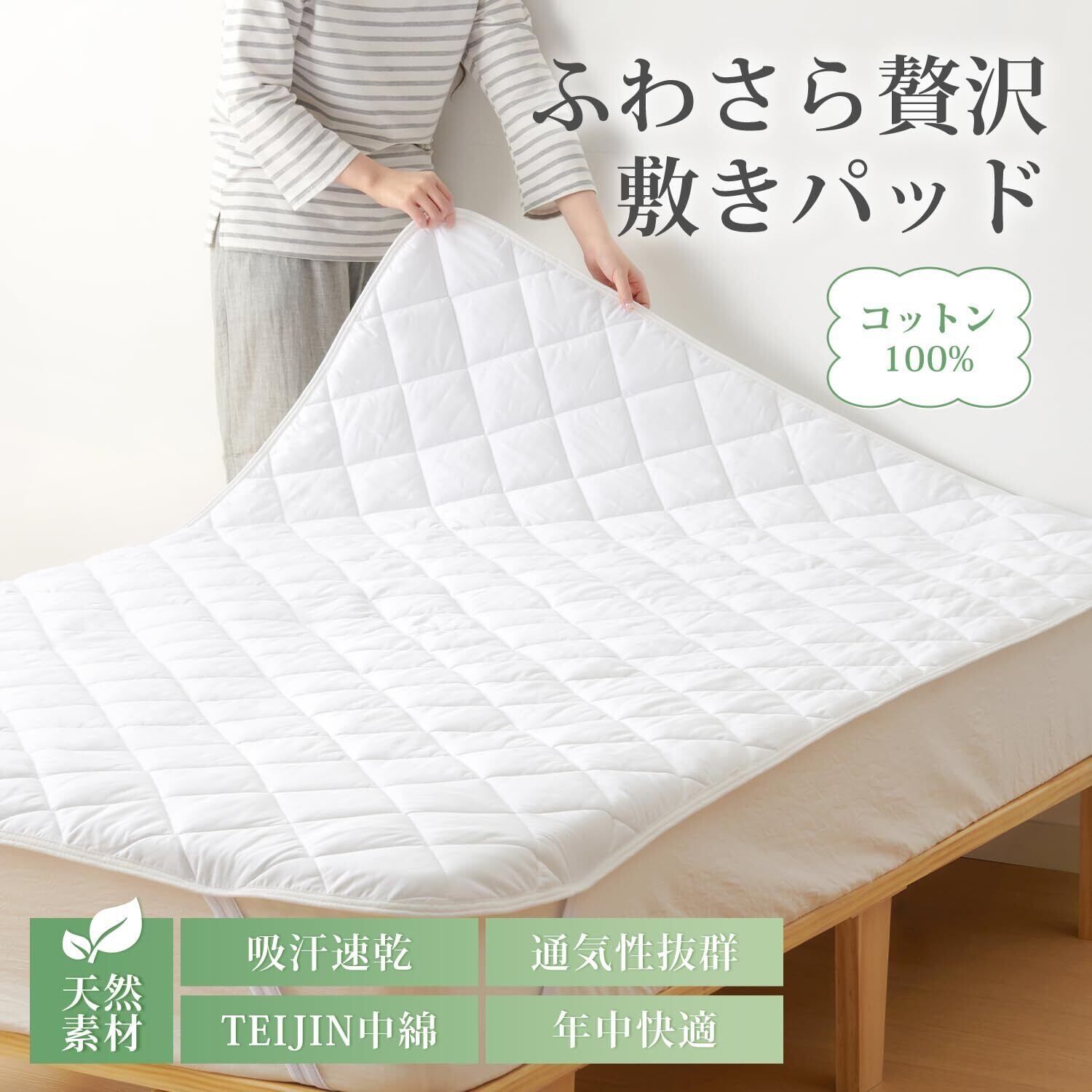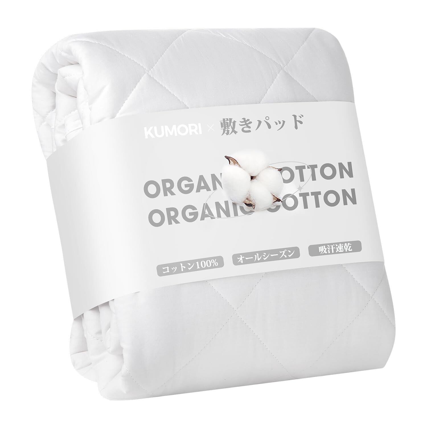 【人気商品】クモリ(Kumori) 綿100% 敷きパッド シングル ベッドパッド 抗菌 防臭 防ダニ TEIJIN中綿 洗える さらふわ オールシーズン対応 吸湿速乾 ベッドシーツ ベッドマット 敷パッド マットレスパッド シングル・100X200cm ホワイト