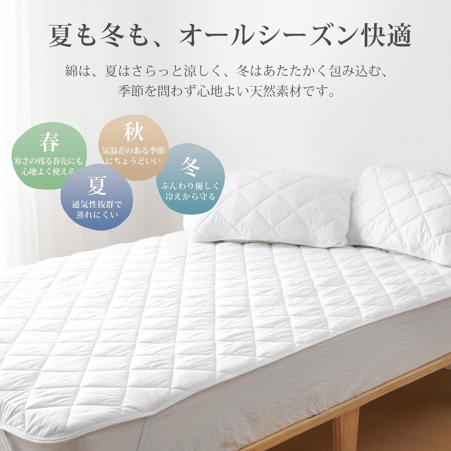 クモリ(Kumori) 綿100% 敷きパッド シングル ベッドパッド 抗菌 防臭 防ダニ TEIJIN中綿 洗える さらふわ オールシーズン対応 吸湿速乾 ベッドシーツ ベッドマット 敷パッド マットレスパッド シングル・100X200cm ホワイト