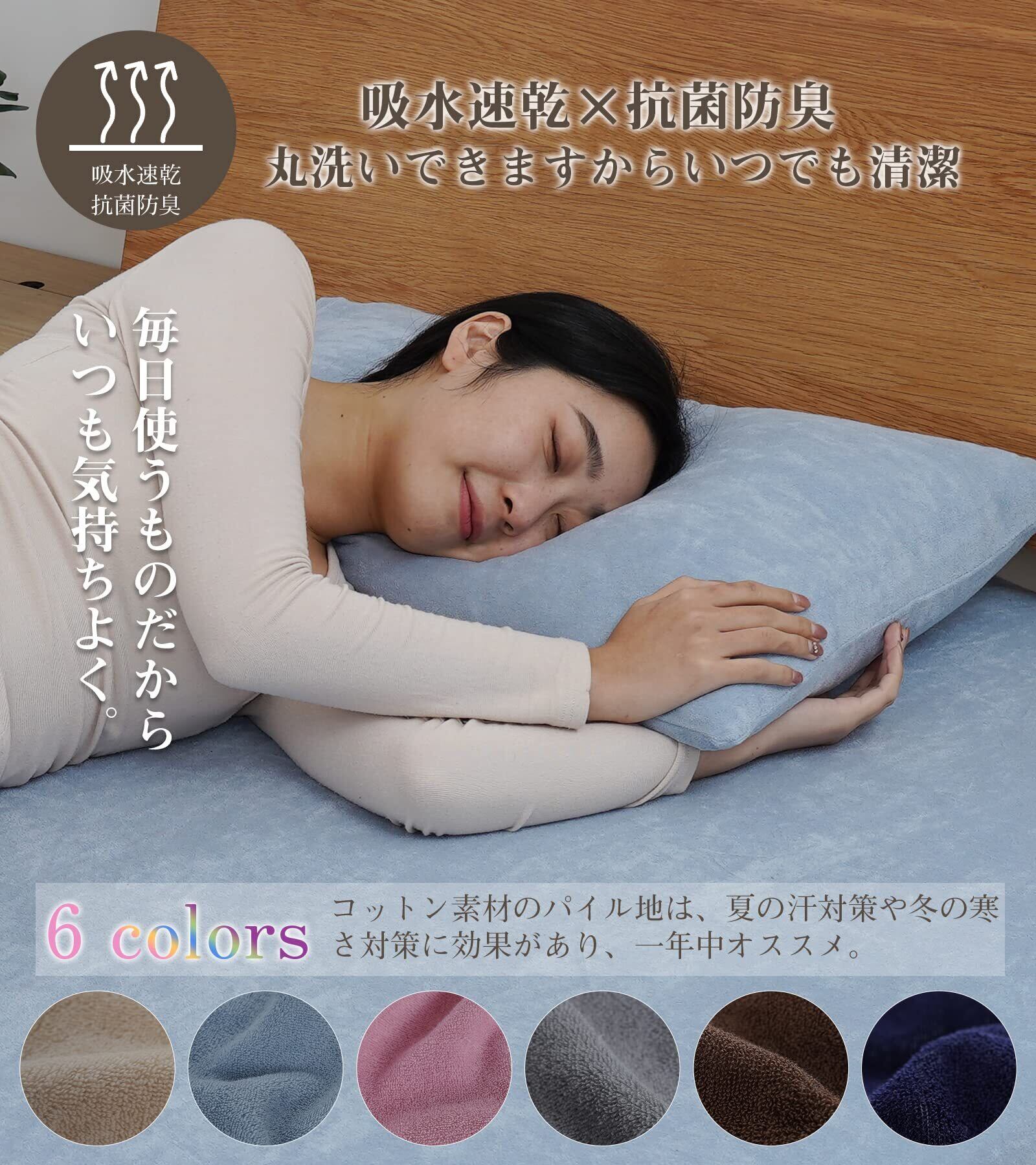 【抗菌防臭・オールシーズン使える】抗菌防臭加工で細菌の増殖を抑制し、防臭効果を発揮します。吸水性が高い枕カバーは寝汗素早く吸収し、サラサラカバーです。コットン素材のパイル地は、夏の汗対策や冬の寒さ対策に効果があり、一年中オススメ。