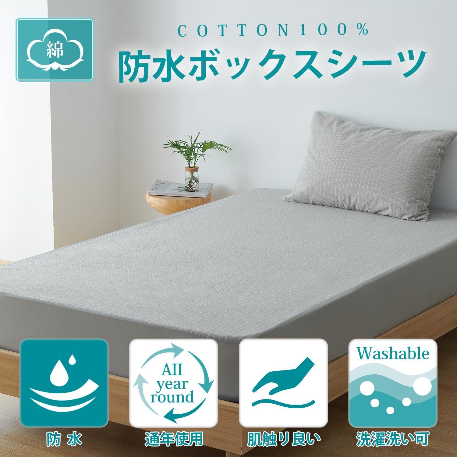 【新着商品】【 限定】クモリ(Kumori) ボックスシーツ 防水タイプ ベッドシーツ マットレス・敷き布団カバー 介護用 おねしょシーツ アレルギー対策 タオル生地 綿100% (グレー シングル・100X200cm)