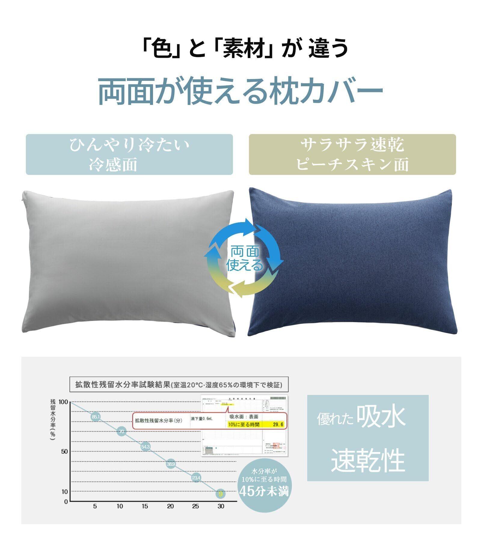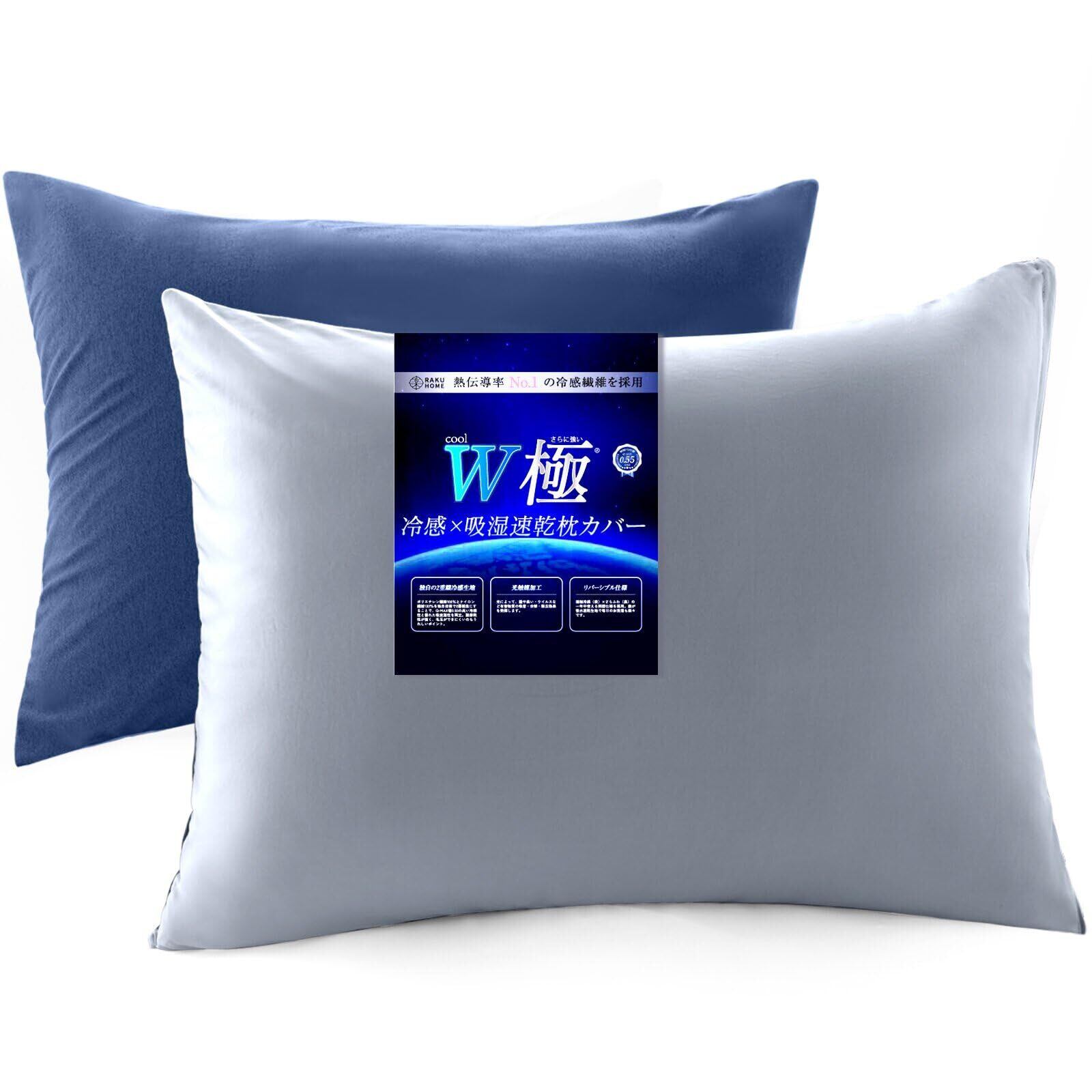 【新着商品】【実用新案+業界最高Q-MAX0.55】W極冷感 枕カバー 冷感 ひんやり 35x50 リバーシブル仕様 【光のチカラで抗菌防臭】ファスナー式 ひんやり枕カバー まくらカバー ピローケース 接触冷感 クール 夏用 冷たい 涼しい 両面用 サラサラ 洗える 35×50 浅青