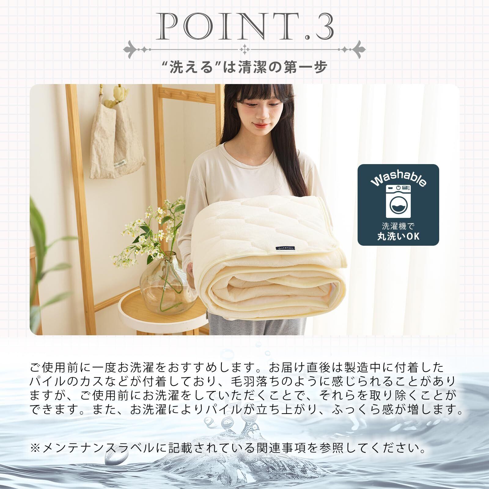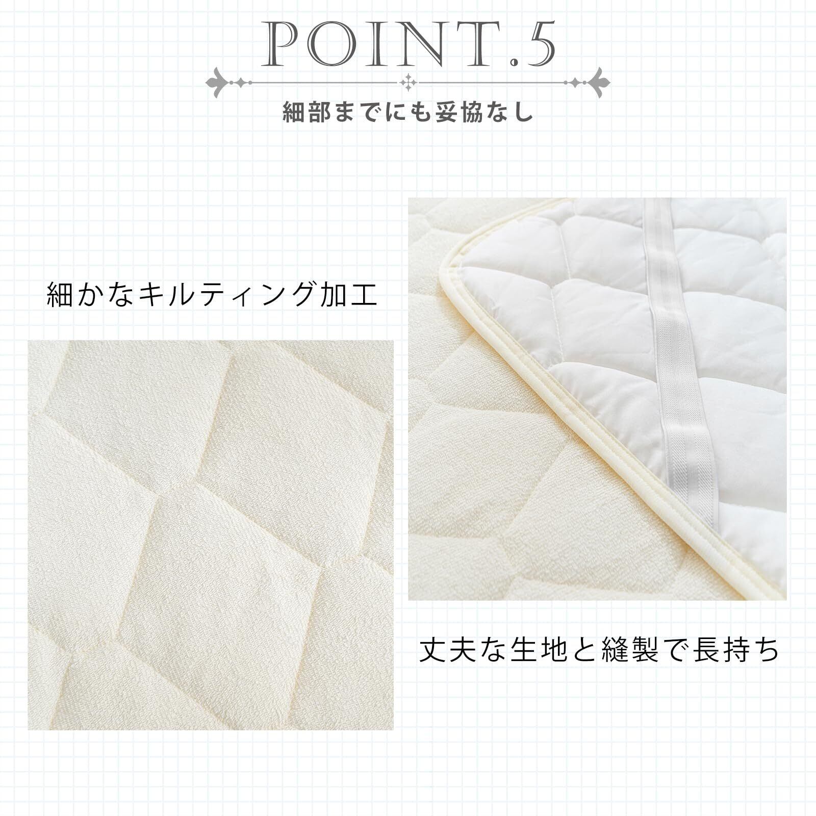 【丸洗いOK!いつも清潔に】ご家庭の洗濯機でマットレスパッドを丸洗いができるので、手軽に清潔な状態を保つことができます。新品時は製造時の繊維くずが付着していることがあるため、初回は洗濯機での洗濯をオススメします。洗濯することで繊維くずが取れ、パイルが立ち上がるので、ふわっと柔らかな手触りになります。【品質】万が一商品に不具合がある場合、にご連絡いただければ迅速に対応いたします。1年間の品質があるから、安心してお買い求め頂けます。