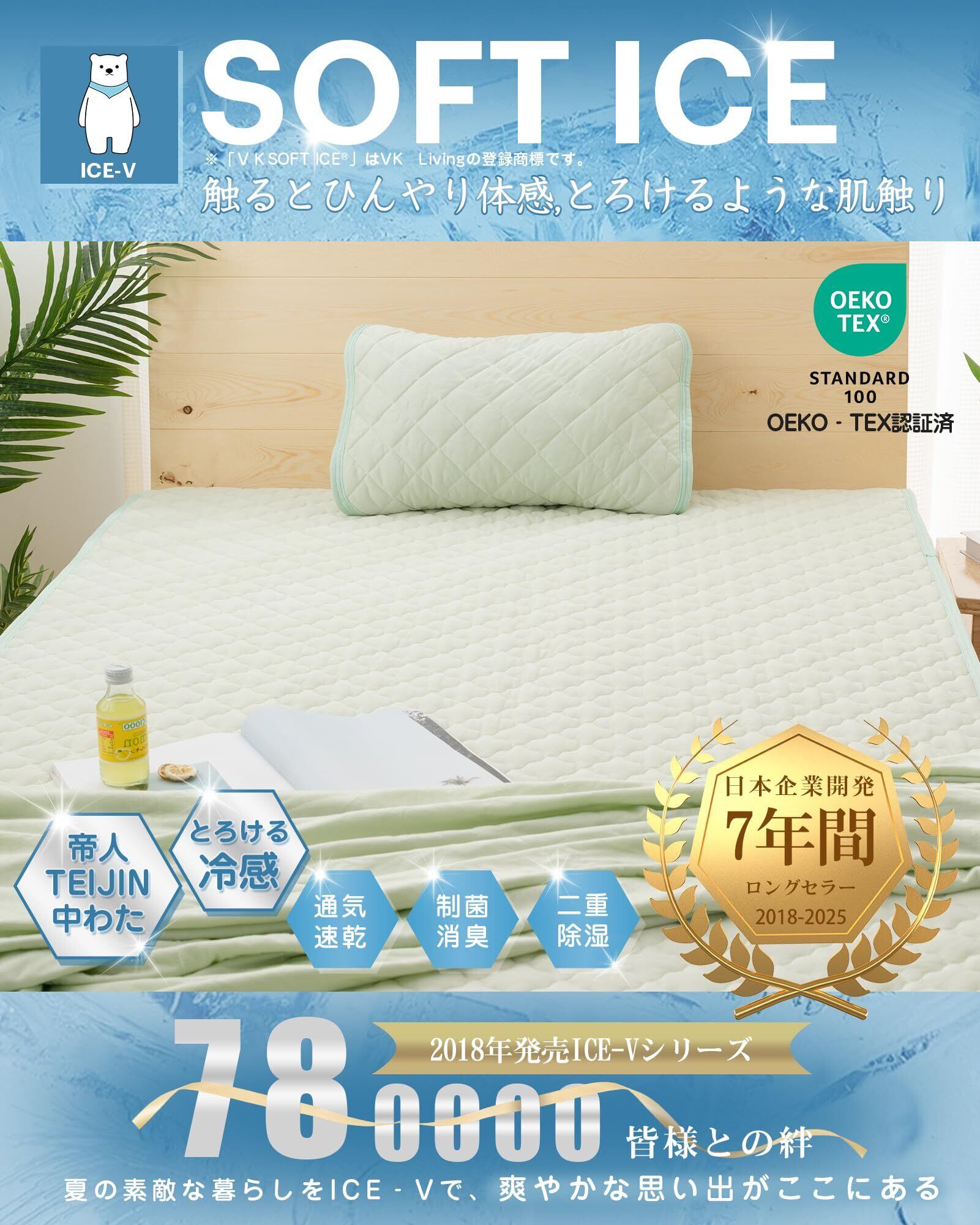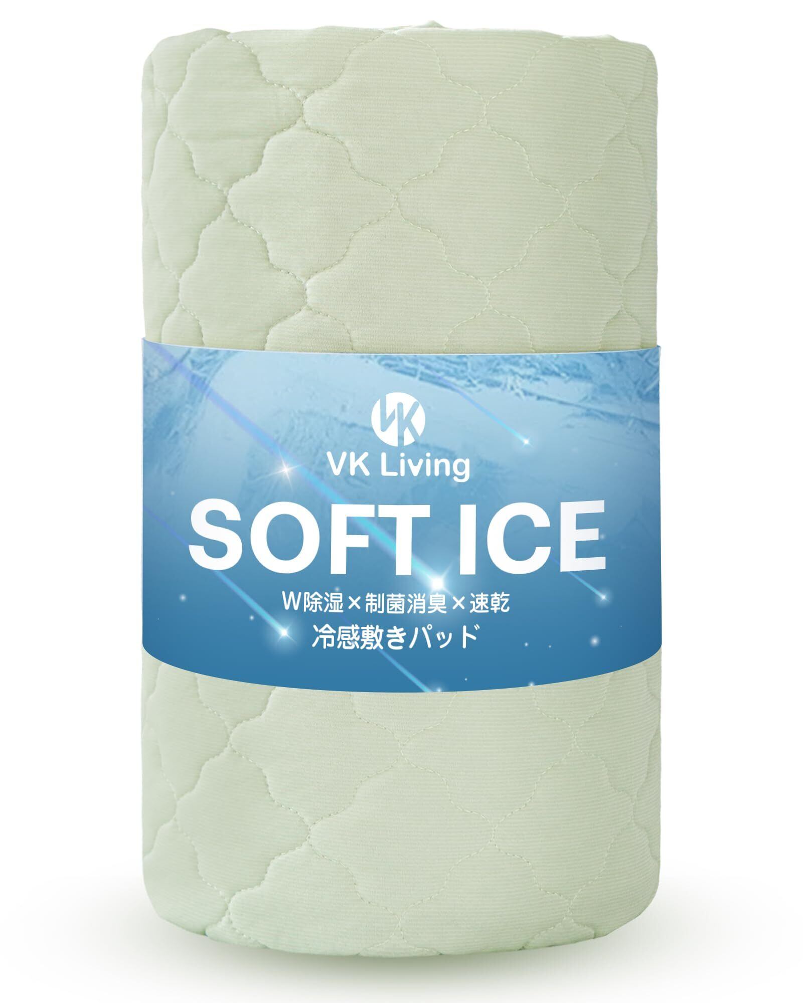 VK Living 敷きパッド シングル 冷感 【SOFT ICE】 しきぱっと 夏用 シーツ ひんやり 【TEIJIN マイティトップ中綿使用】 ベッドパッド 24時間持続制菌消臭 敷パッド オールシーズン 二重除湿速乾 洗える 防ダニ 抗菌防臭 100x205cm グリーン