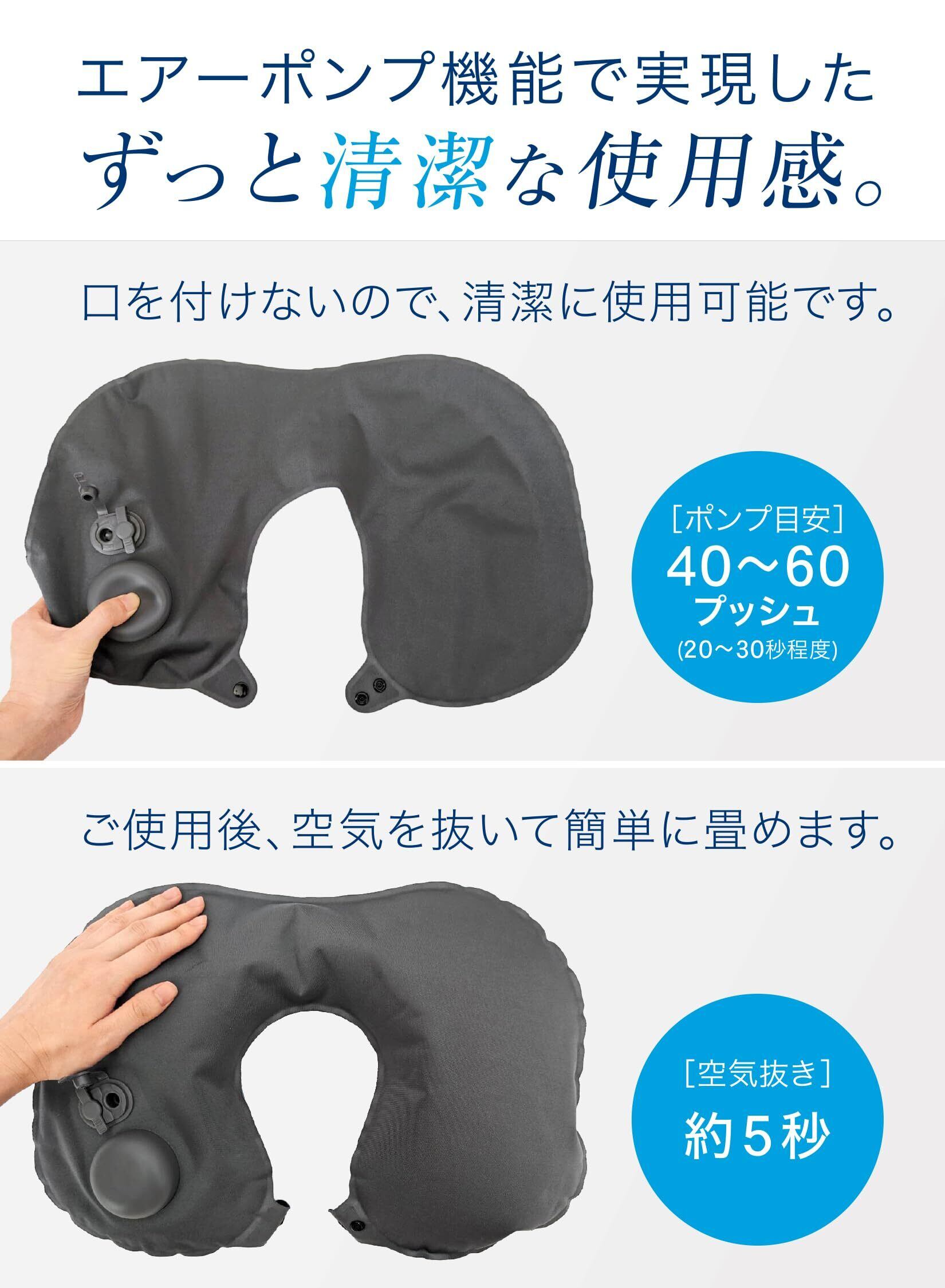 特徴 インフレータブル, フィット感UP!ボタン付き, 片手サイズに!収納袋付属, 蒸れない快適な生地, 飛行機、旅行の快適グッズ!